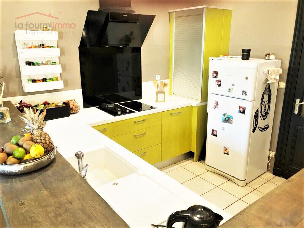 Elle se compose dune pièce de 34, 20 m² servant de salle à manger, équipée d'un poêle insert et dune trappe donnant accès à une belle cave à vins enterrée de 4 m², toute en pierres apparentes, d'un espace cuisine de 6, 80 m², dune porte donnant accès au chai de 40, 12 m².