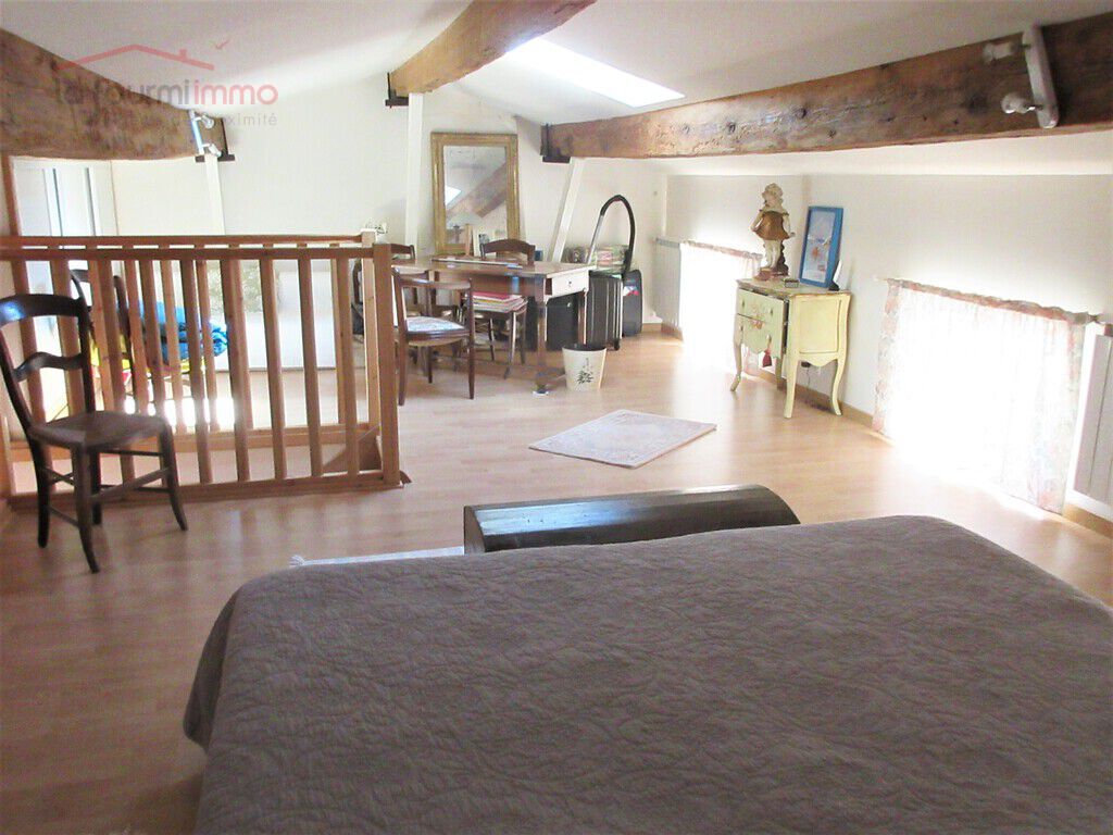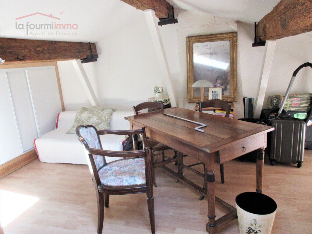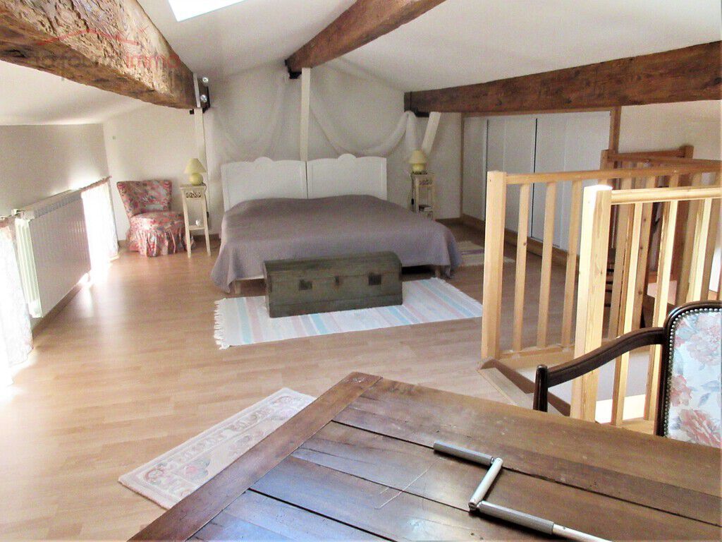 À l'étage une grande chambre de 15 m² carrez et 33, 41 au sol avec placards, velux et trois petites fenêtres.