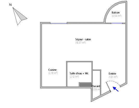 Il se compose d’une pièce de vie lumineuse ouvrant sur un balcon, d’un espace cuisine et d’une salle d’eau.