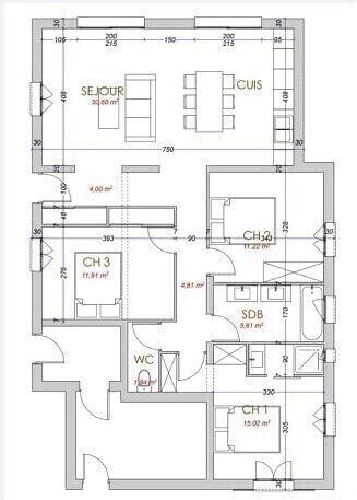 Tel que présenté, vous pourrez ainsi créer un appartement rez-de-jardin de 85m² environ composé d'une grande pièce de vie avec cuisine de 30m² env, de deux chambres de plus de 11m² ainsi que d'une suite parentale de plus de 15m², d'une salle de bain double vasques et d'un wc indépendant.