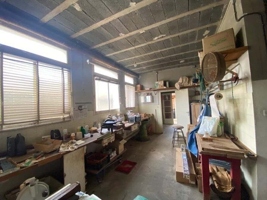 Il s'agit à l'heure d'aujourd'hui d'un grand garage avec son atelier. Le tout ayant une grande hauteur. Cet espace sain en hourdis béton sera très lumineux par toutes ses ouvertures.