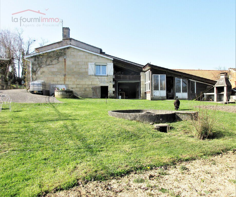 Située dans un secteur calme et résidentiel, à 10 minutes de Saint André et 2 minutes de Bourg, cette maison datant de 1903, dune superficie habitable de 108 m² sur une parcelle clôturée de 948 m² piscinable avec un puits, un chai attenant de 61, 65 m² avec sa mezzanine de 34 m² et un cellier buanderie, le tout pouvant servir dhabitation et 91, 22 m² de sous sol servant datelier et de rangements, un garage attenant de 19, 60 m² et une grande pièce de 40 m² environ servant de serre et de rangement.