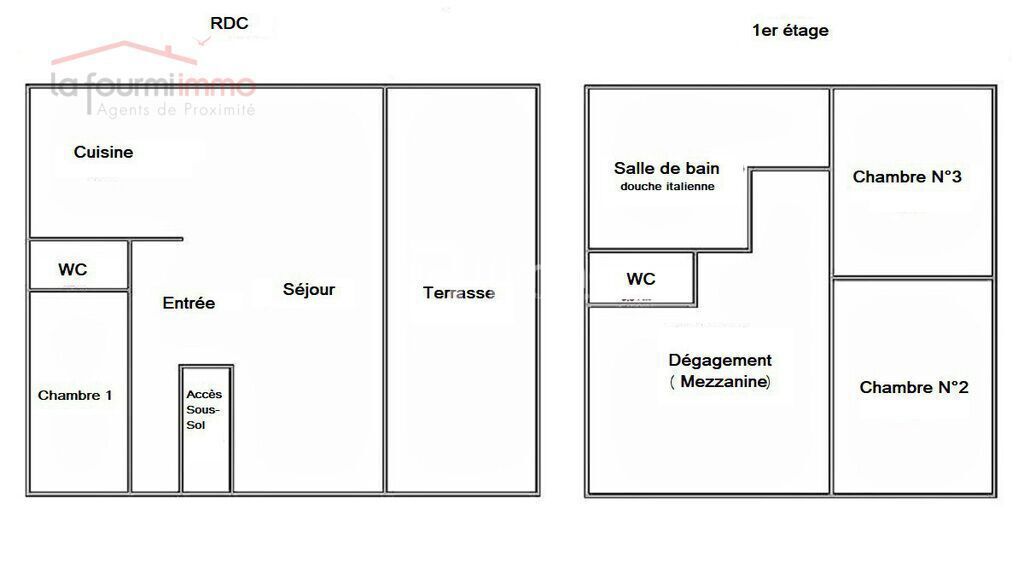 Au 1er étage : un dégagement (mezzanine) pouvant accueillir un bureau, deux chambres de belle taille, un second WC séparée et une salle de bain spacieuse avec douche à l’italienne.