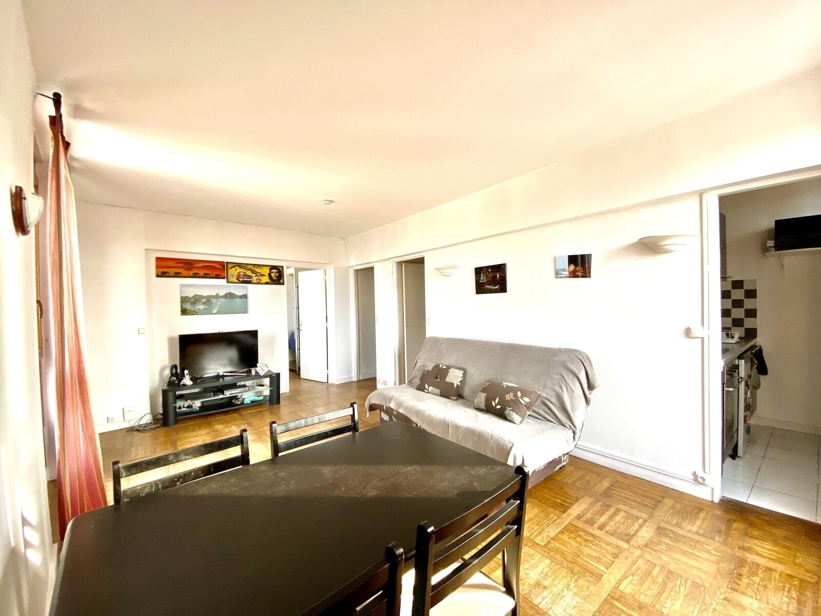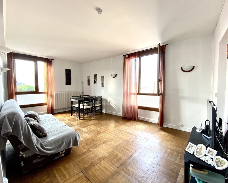 Au 5ème et dernier étage avec ascenseur, l'appartement se compose d'une entrée qui donne sur un salon de 19m2 en double exposition, une cuisine équipée indépendante, une chambre, une salle de bains avec WC et un grand placard type cellier.