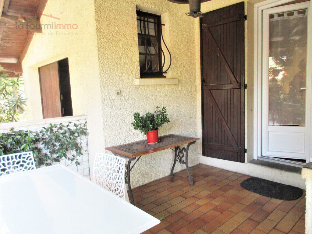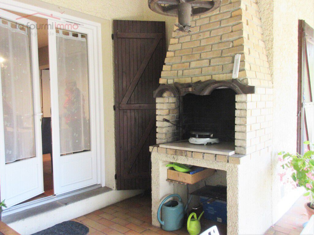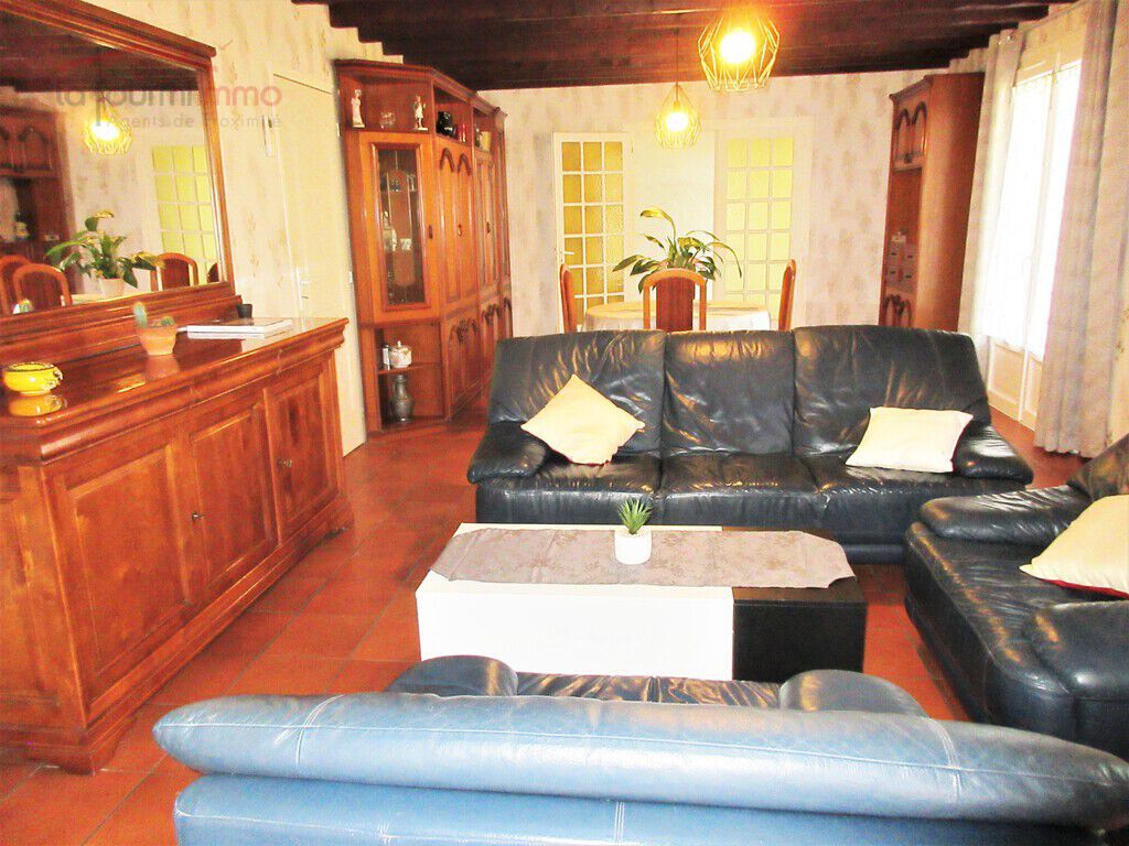 La maison se compose d'une entrée avec placard de 6, 7 m², un salon, salle à manger de 35, 16 m² avec cheminée et trois portes-fenêtres donnant sur la terrasse abritée et carrelée de plus de 100 m² et porte permettant d'accéder à la cuisine entièrement refaite dernièrement avec porte-fenêtre donnant sur la terrasse et son espace repas avec barbecue et porte donnant accès au garage et la buanderie, d'une première chambre de 11, 73 m² avec placard, une deuxième de 9, 58 m² elle aussi avec placard et une troisième de 11, 85 m², des toilettes avec fenêtre et une salle d'eau de 5, 16 m².