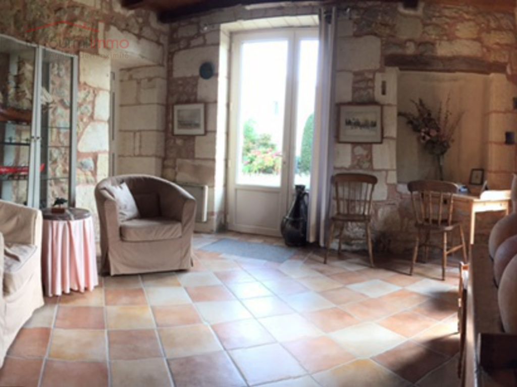 D’une salle à manger de 26 m² avec une porte-fenêtre donnant sur la cour exposée sud et une autre donnant sur un patio avec une cour en pierre pavée et une terrasse abritée permettant de profiter de l’extérieur, une cuisine semi ouverte toute équipée de 9, 69 m², un cellier buanderie de 3, 40 m², des toilettes, un grand salon avec une cheminée turbo avec répartiteur de chaleur, une autre pièce servant de deuxième salon de 15 m², mais pouvant servir de chambre et le local technique de 8 m² avec une porte donnant accès à l’extérieur.