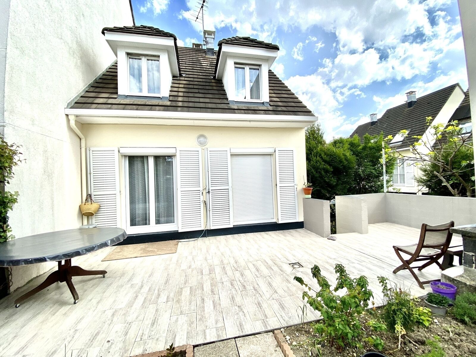 Située dans une allée calme et pavillonnaire, en copropriété de sol, cette maison jouit en plus de 157 m2 de jardin privatif. Mitoyenne d’un côté, d’une surface de 115 m2 loi carrez, Elle se compose de 7 pièces et 5 chambres.