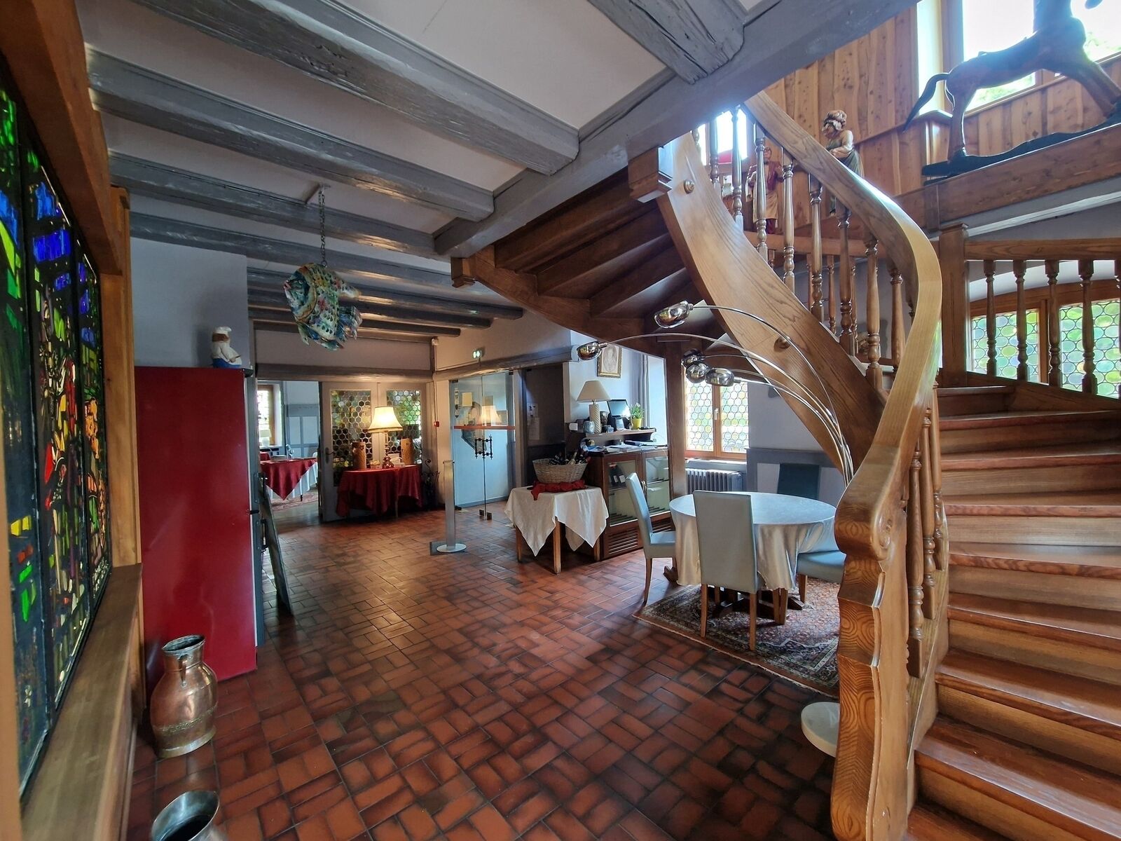 Cette belle bâtisse comprend un hall d’accueil, trois salles de restauration, une cuisine, un grenier, une buanderie, un caveau et une agréable terrasse. Un logement de fonction d’environ 73 m², sept chambres, et deux salles d’eau avec toilettes, sont également à votre disposition.