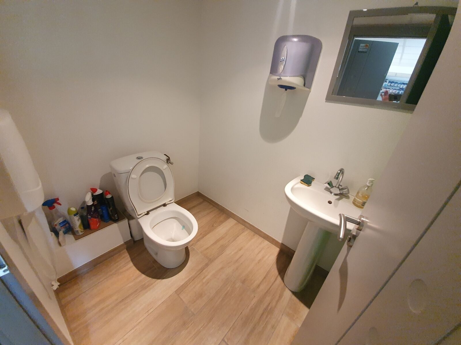 dans le local professionnel: un bureau d'environ 50 m2, un débarras et un wc avec lave mains.