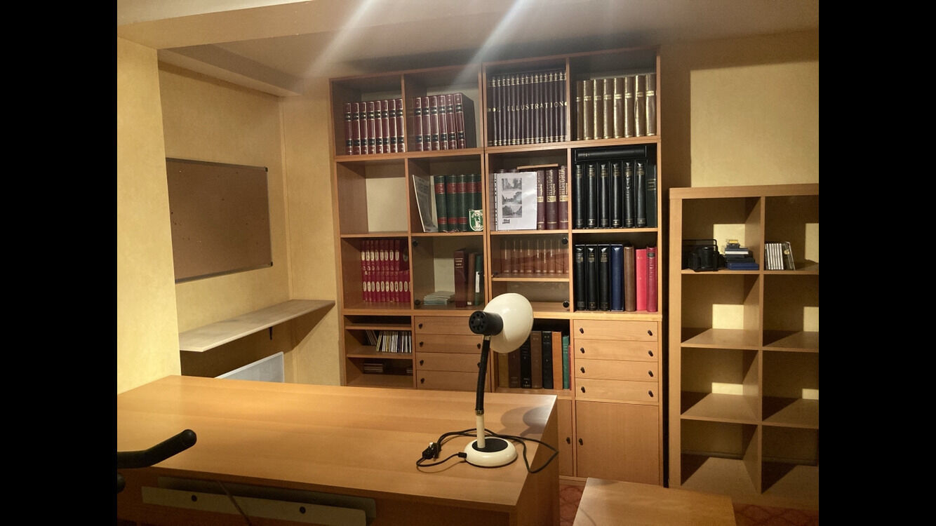Il est compartimenté. On y voit une buanderie, l’aménagement d’un bureau, une cave.
