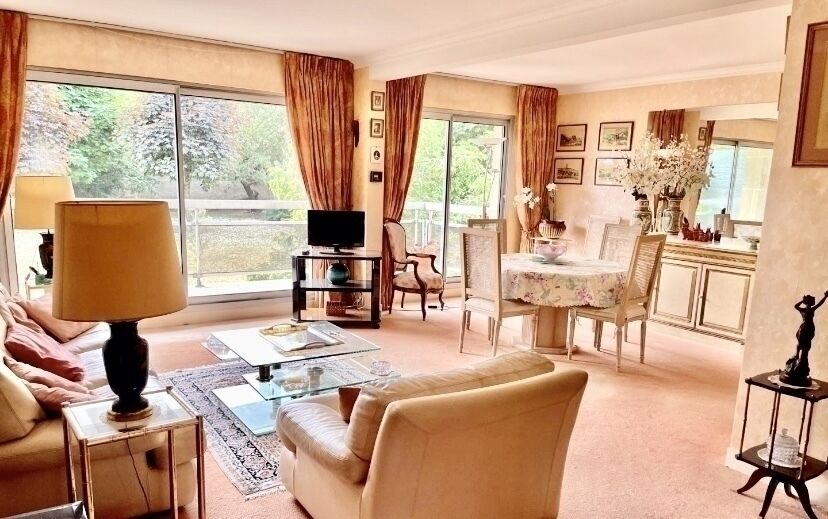 Appartement lumineux de 84,64 m2 / 4P, situé dans une résidence de standing des années 70, au calme et avec gardien, composé d'une entrée desservant 1 double séjour de 33 m2 avec accès terrasse exposée Sud et vue sur Parc Paysager, une cuisine indépendante récente, 2 chambres, une salle de bains, 1 salle d'eau, WC séparés.