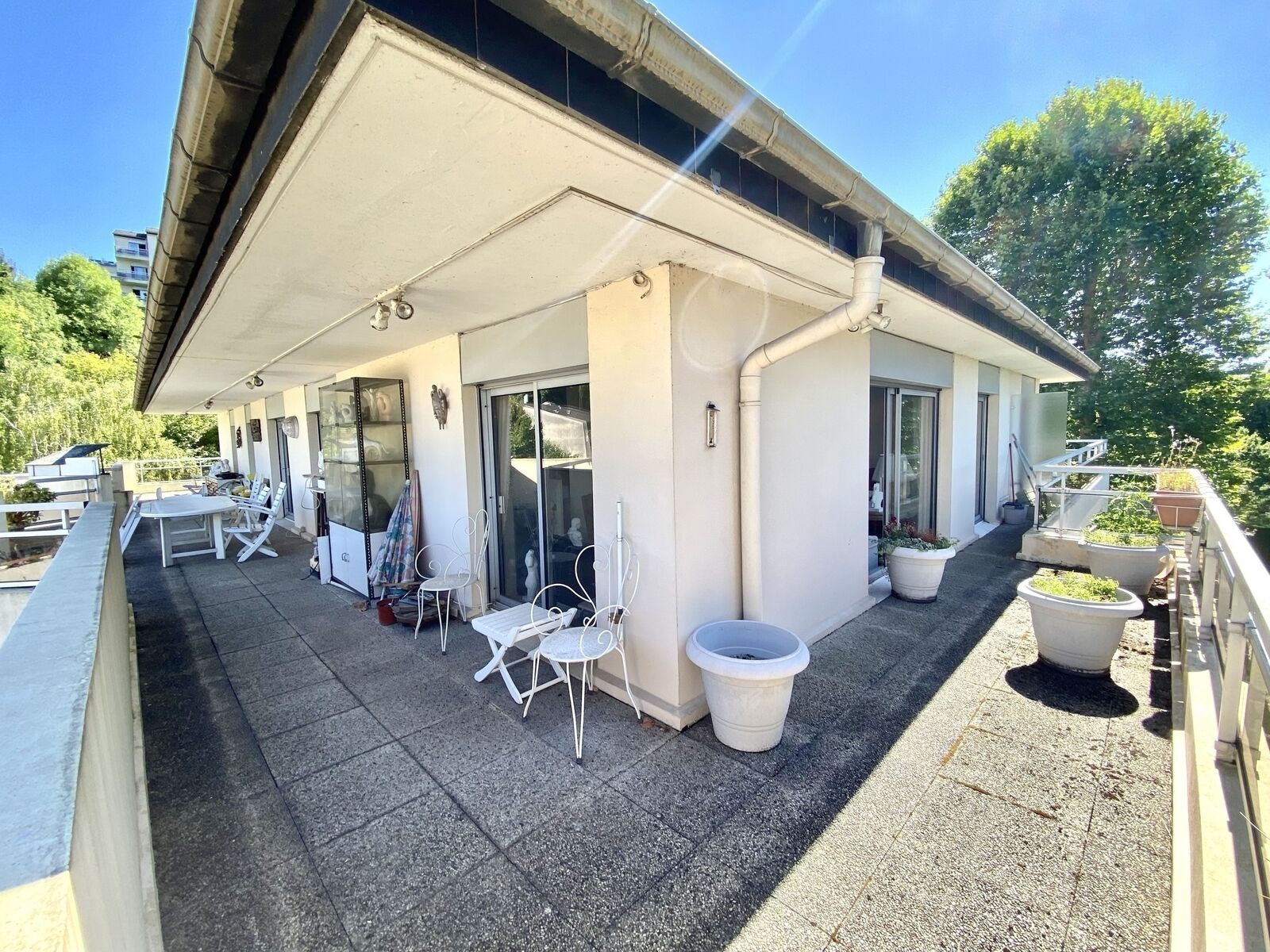 Dans une résidence des années 80 et au sein d'un parc paysager, venez découvrir ce grand appartement de 5P d'une superficie de 112 m2 loi carrez, agrémenté d'une terrasse circulaire de 90 m2.