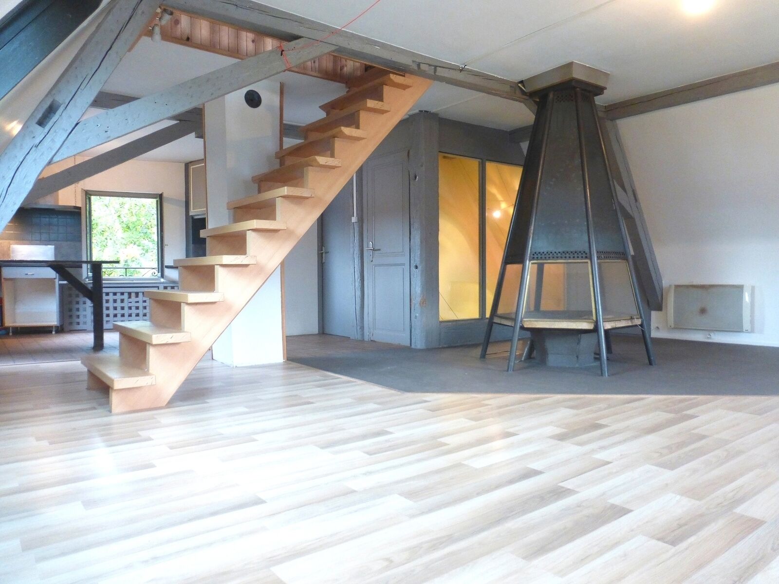 Au 2e étage: un loft de 52,15m² loi carrez et d'un surface au sol de 91,85m² en duplex avec cuisine ouverte sur l'espace de vie, espace nuit à l'étage et salle d'eau.