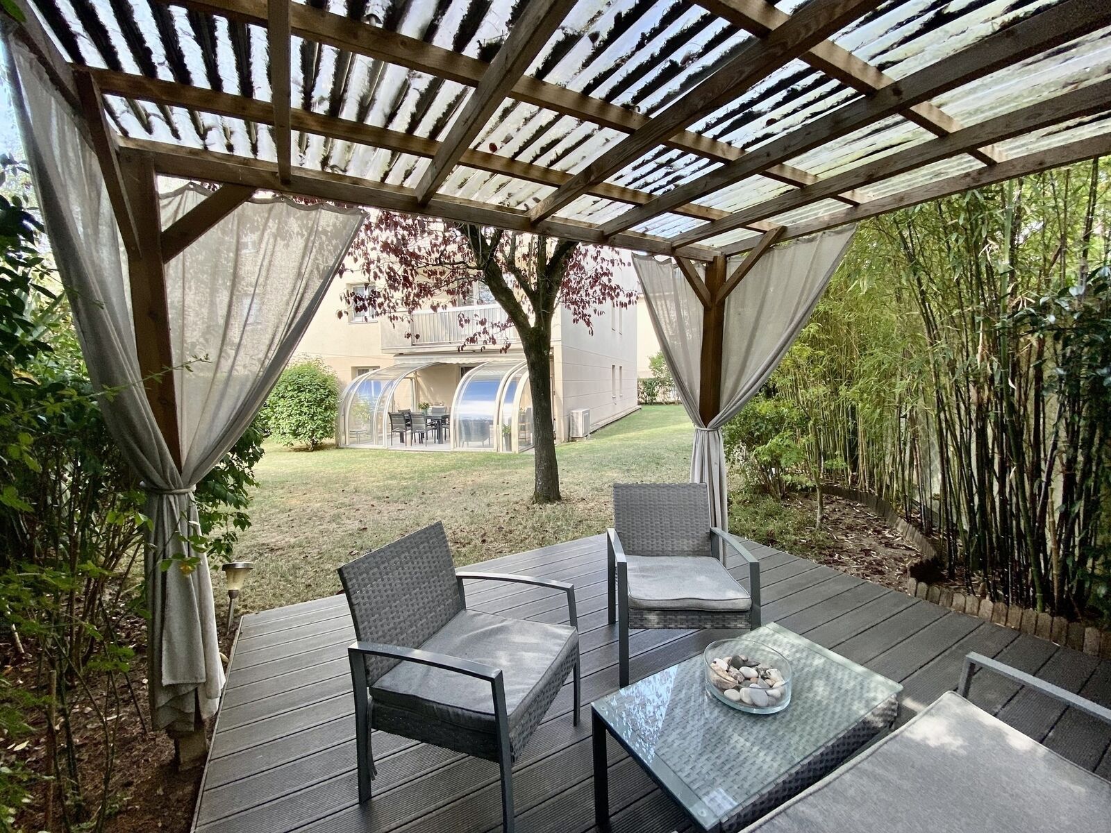 Pour finir, Un espace Barbecue abrité par une pergola vous permettra de profiter des soirées d'été entre amis ! N'hésitez plus, venez visiter!