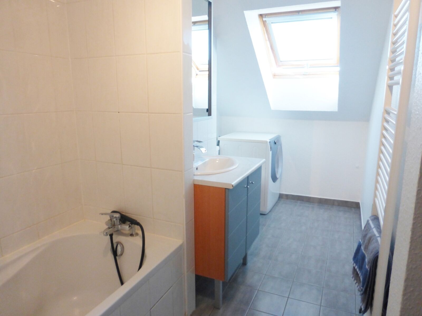 Cet appartement moderne et chic a été entièrement rénové récemment par des professionnels. On y retrouve des matériaux de qualité : parquets, murs en béton ciré, enduits à la chaux, mur de cuisine en stratifié, placard de rangement en bois massif... Il est raccordé à la fibre.