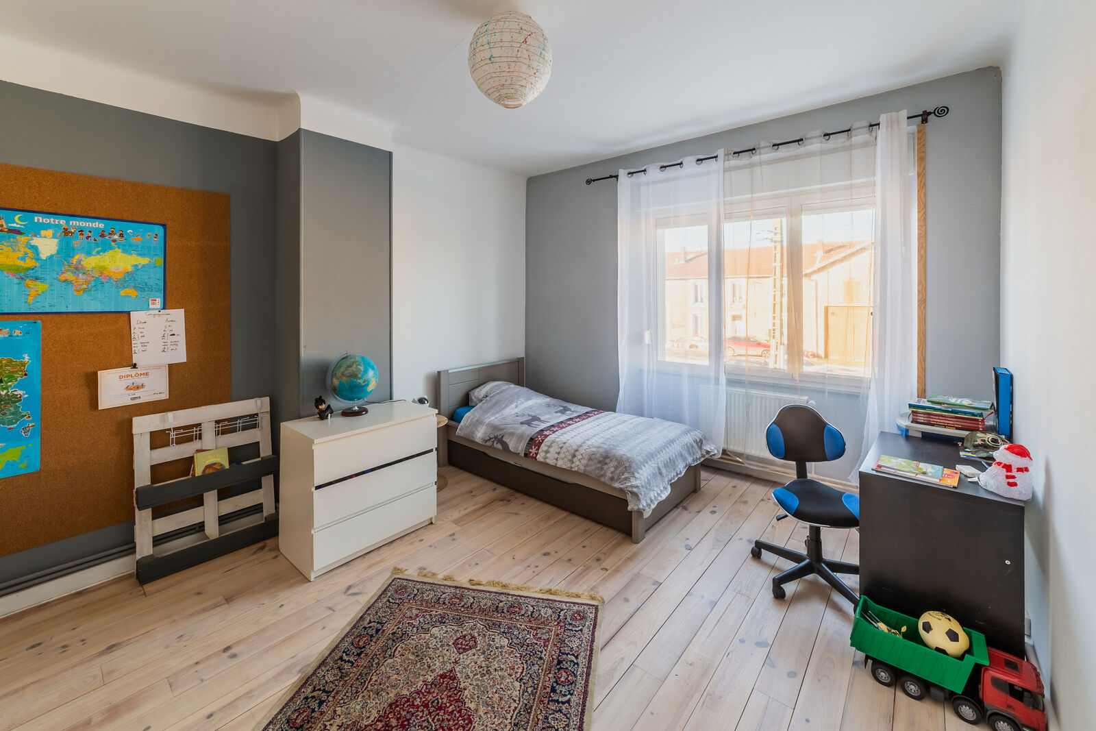 A l'étage, nous trouvons donc 2 chambres supplémentaires (de 16m² et de 22m²), ainsi qu'une salle de bain, avec sa baignoire et une douche.