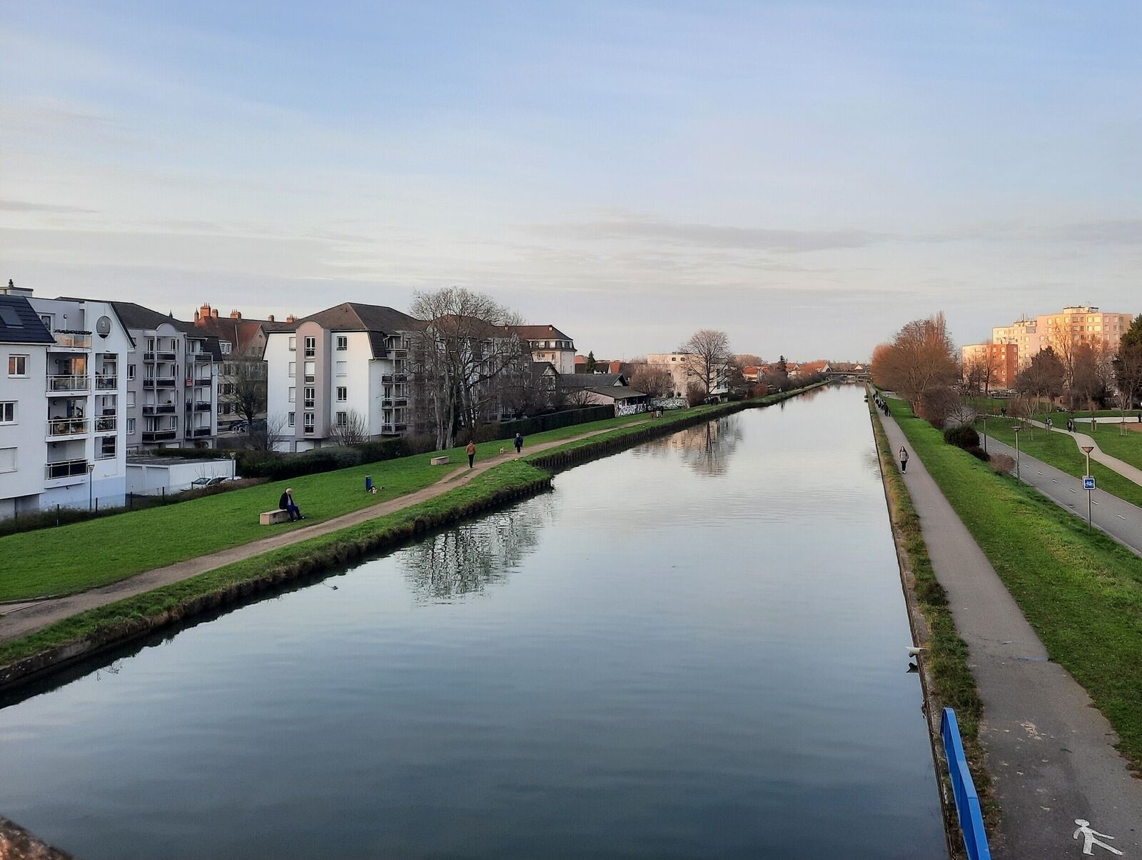 Cet agréable logement lumineux, accueillant et très bien conçu, se situe dans une petite rue calme de Bischheim, à sens unique, à proximité de toutes les commodités : tram à 6 minutes à pieds, parc pour petits et grands, petits commerces, supermarché, Parc des Sports, restaurants, piste cyclable, belles promenades au bord de l’eau...