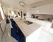 une cuisine équipée donnant sur le jardin et ouverte sur le salon séjour.