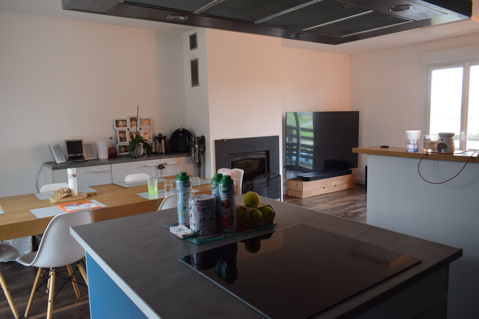 Présence d'un niveau principal, composée d'une cuisine aménagée, avec ilot central, ouverte sur le coin repas puis sur la partie salon (Formant un beau L).