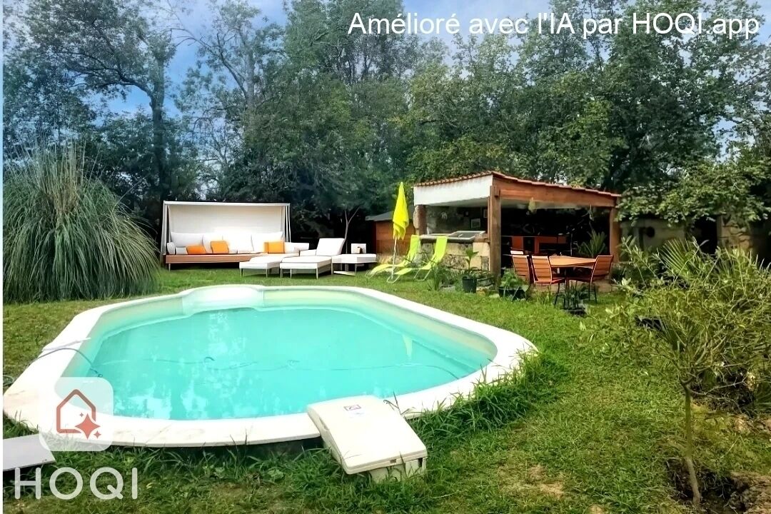 -piscine de 7,50 x 3,50 m avec à proximité un cabanon pour cuisine d'été abritée,