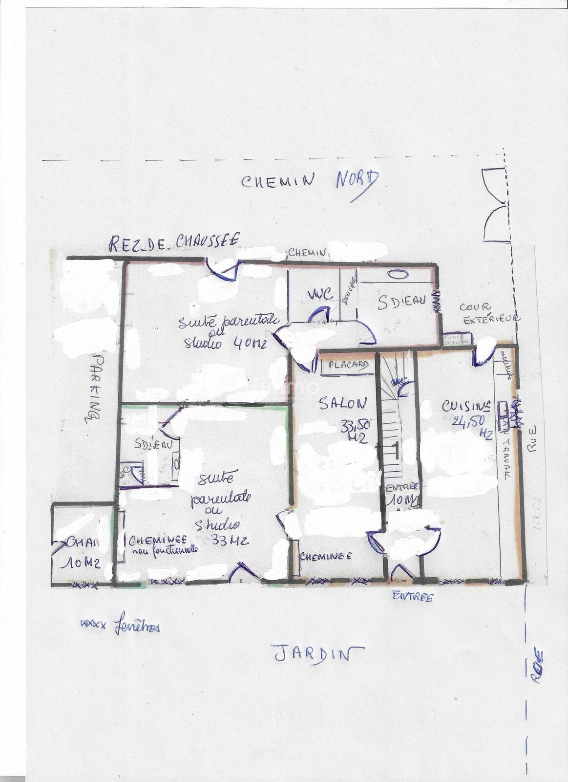 -3 suites parentales dont 2 au rez-de-chaussée (entrées indépendantes sur l'extérieur) avec salles d'eau privatives et WC qui sont actuellement aménagés avec kitchenette pour locations meublées de courte durée, plus 2 chambres en étage dont une avec salle d'eau,