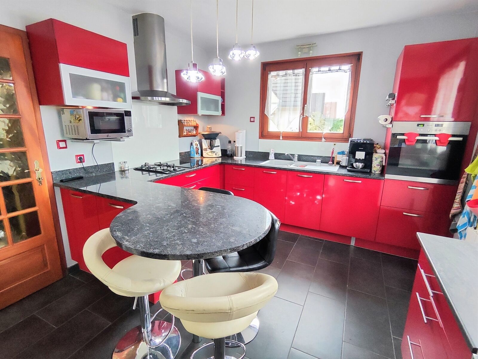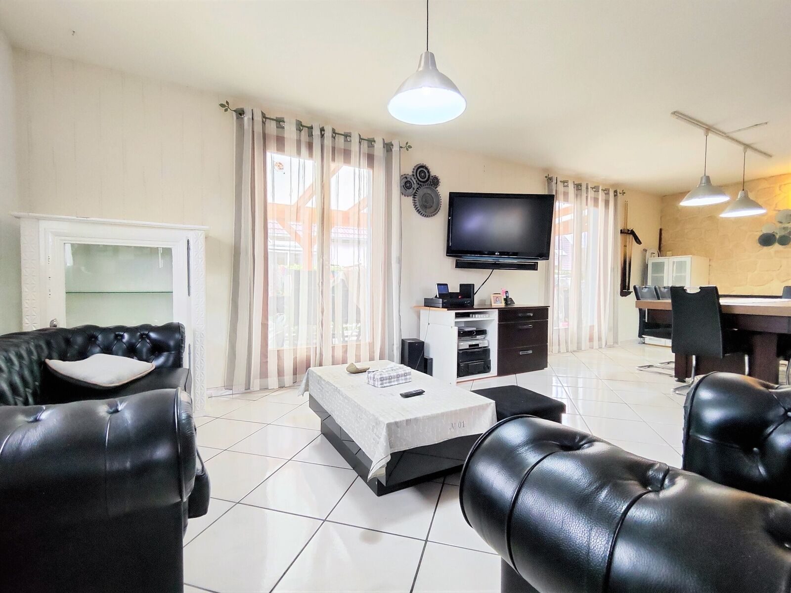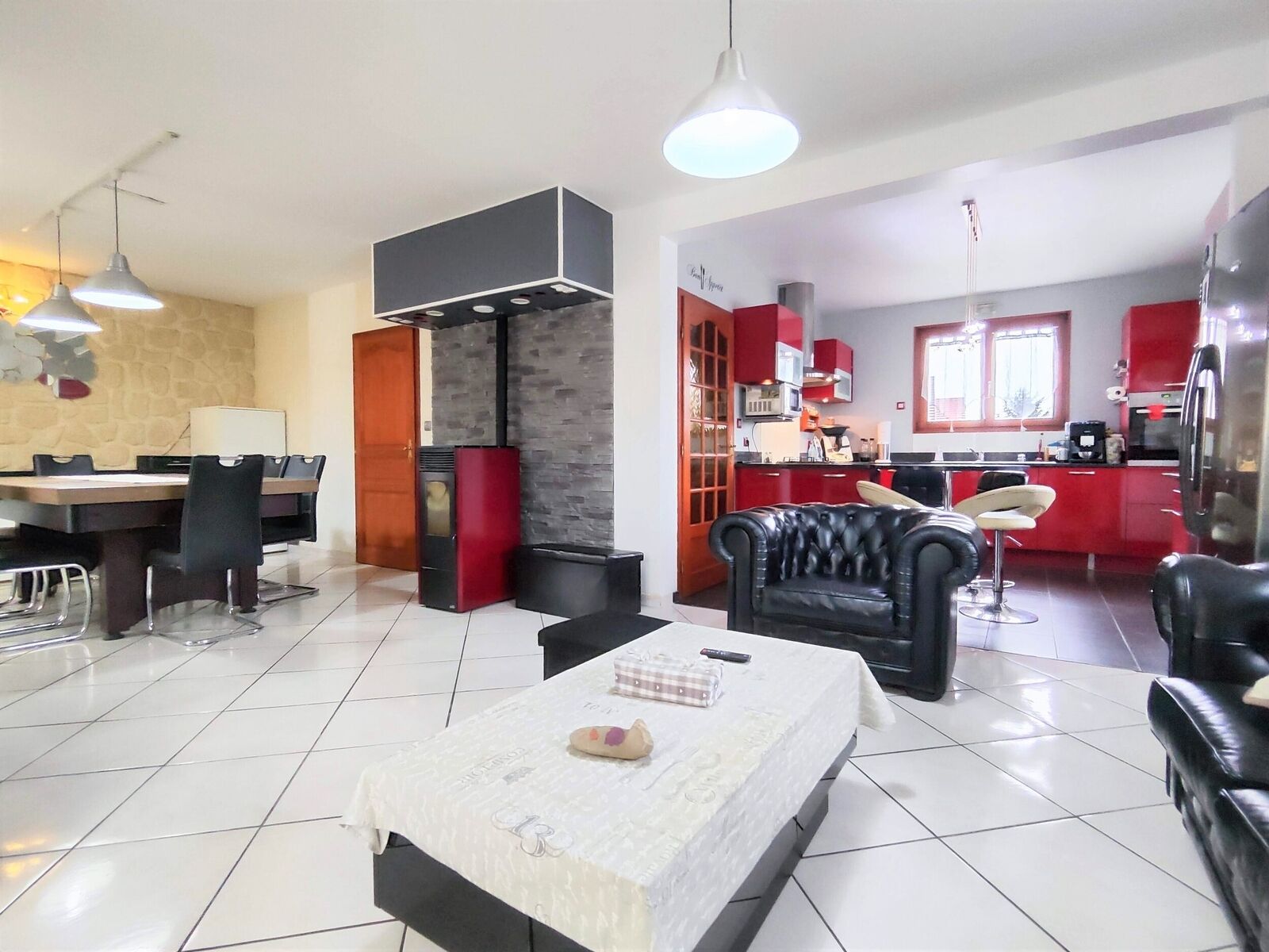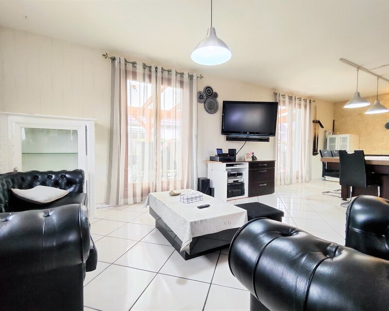 En ce qui concerne les équipements, toutes les fenêtres sont en bois et dotées d'un double vitrage, bonne isolation thermique et phonique. Le garage est également équipé d'une porte basculante motorisée Moos, facilitant ainsi l'accès et la sécurité de votre véhicule.