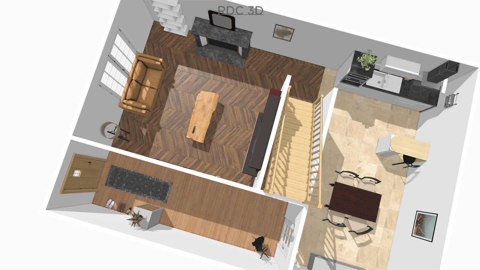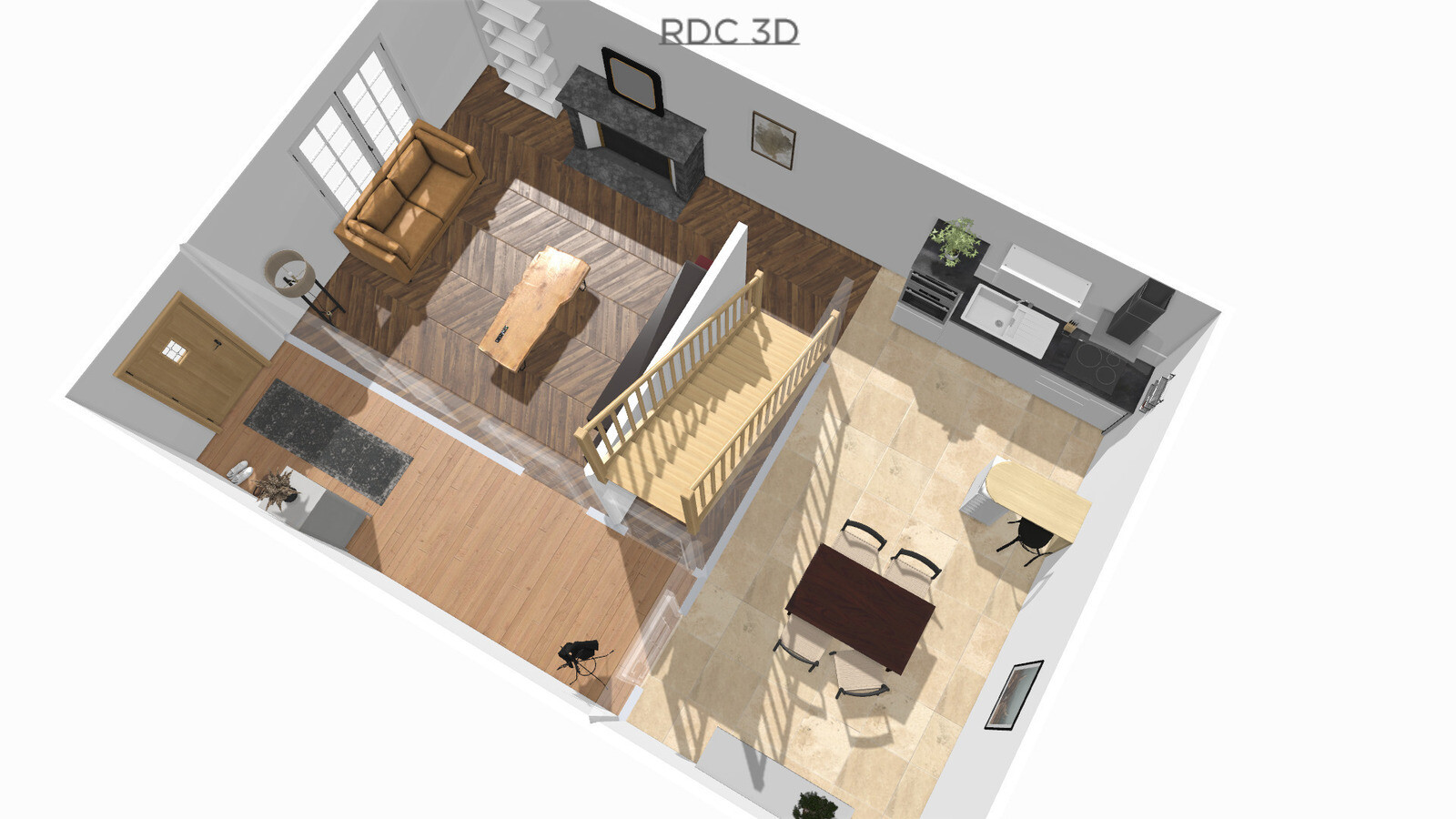 Cette maison comprend au Rez de chaussée : D'une longue entrée donnant sur le salon séjour avec son parquet en chevron et sa cheminée d'époque , celle ci attenante à la cuisine aménagée , offrant un dôme qui illumine la pièce .