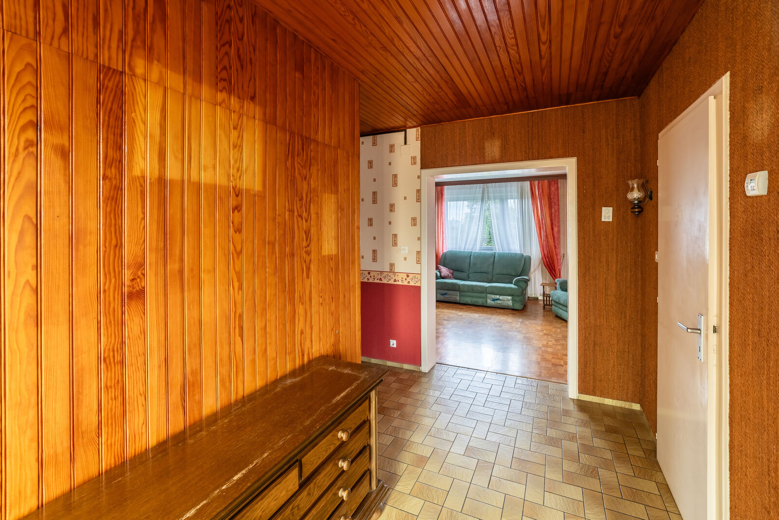 Habitation familiale, elle dispose d'un beau Salon-Séjour, avec une vue sur l'arrière de la Maison et notamment sur ce beau terrain, déjà décrit.