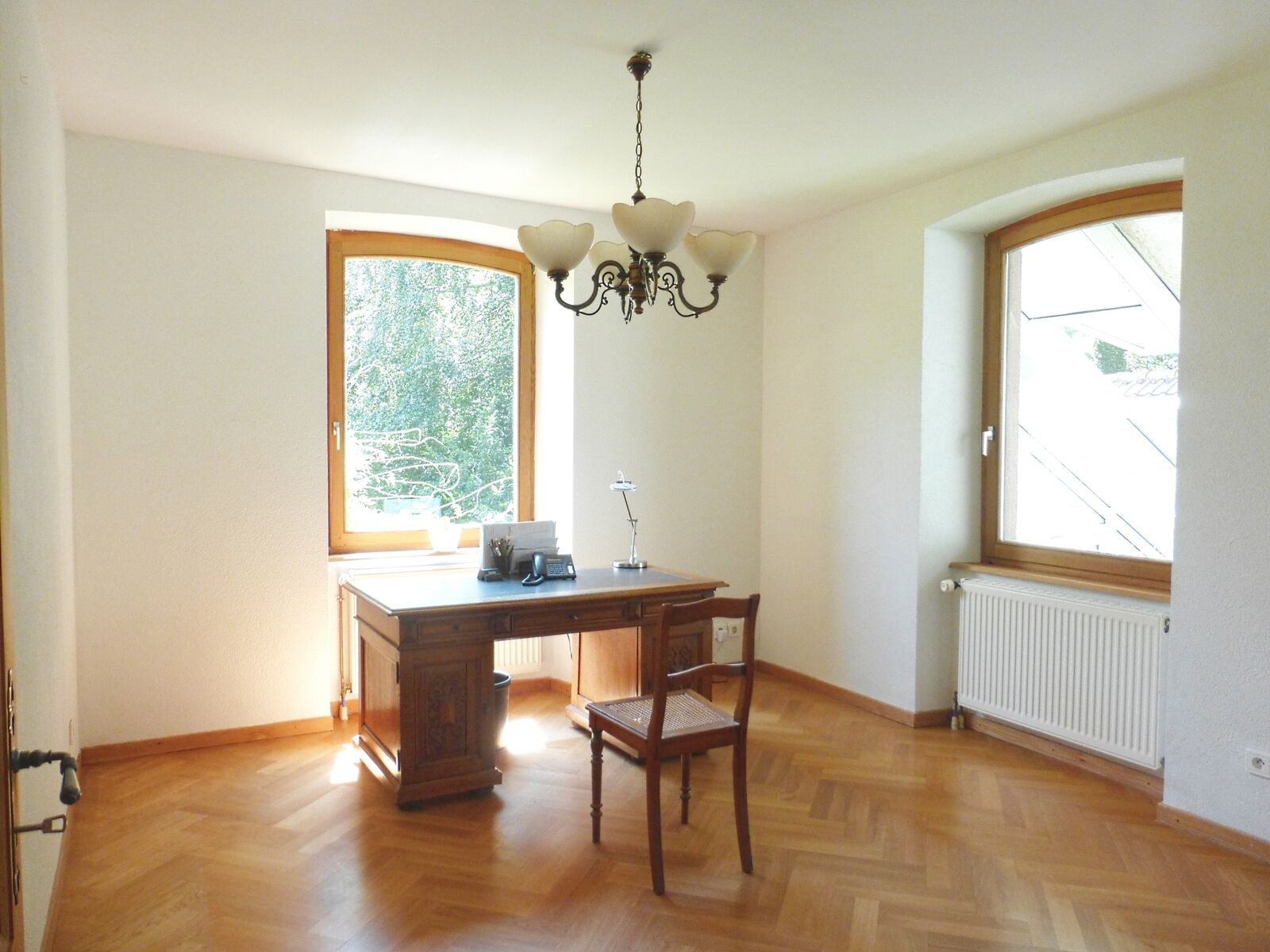 Au rez-de chaussée: deux entrées spacieuses, une cuisine, des WC et une grande pièce de vie organisée autour d'un kachelofe ouvrant sur la véranda et son jardin d'hiver.