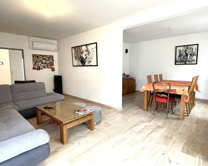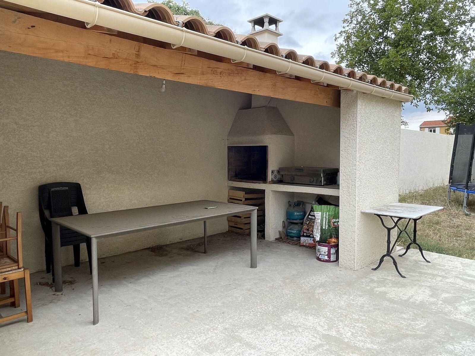 A l'extérieur en plus de l'espace repas , vous trouverez une belle entrée avec portail électrique et parking pouvant accueillir 2 ou 3 véhicules plus un garage de 20 m2 La maison est entièrement rénovée, elle est équipée de climatisations .