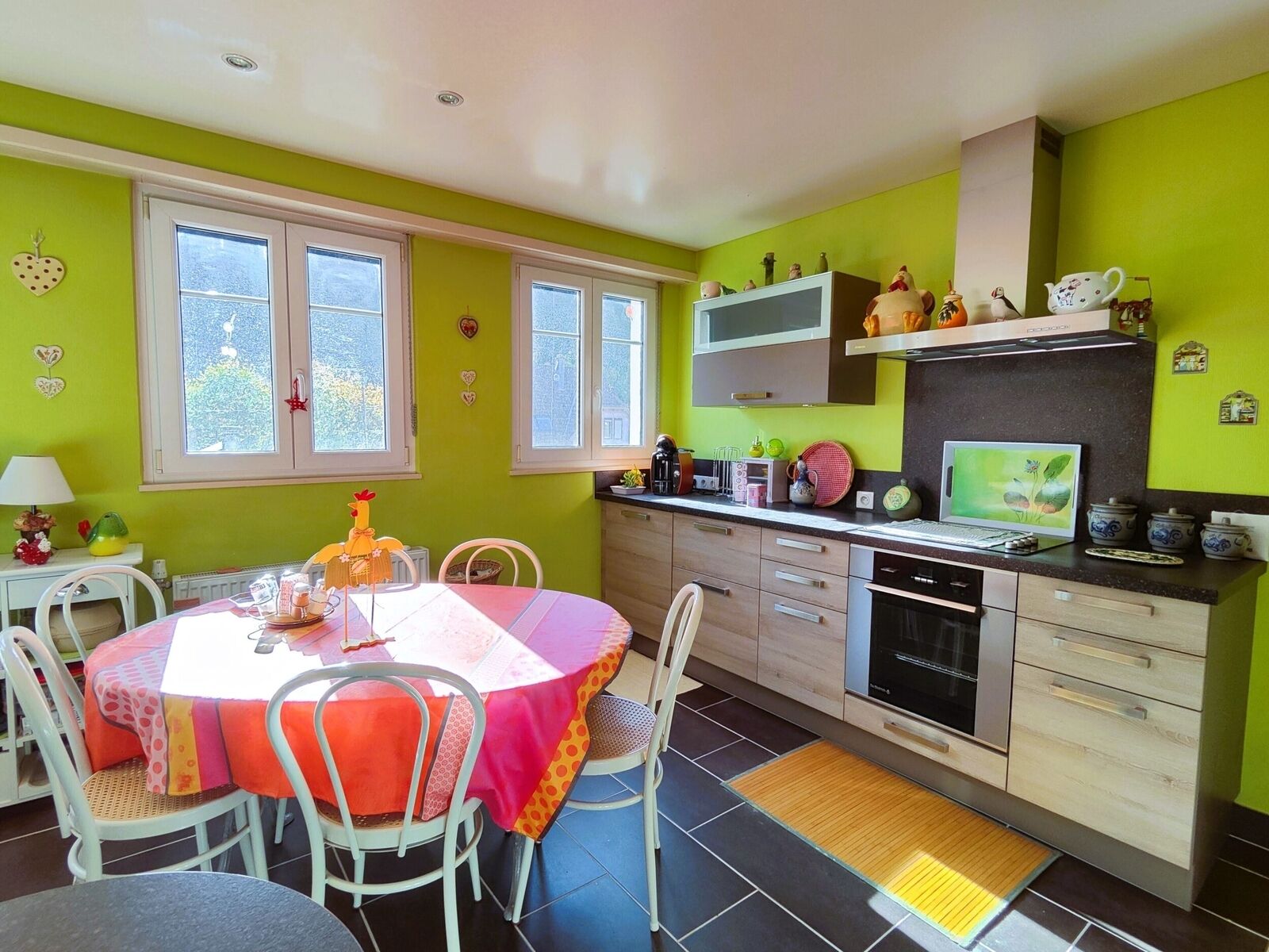 Il est idéalement située au centre ville de Thann avec ses nombreux commerces et ses commodités, écoles, supermarché, boulangerie, bureau de tabac, banque, gare ...