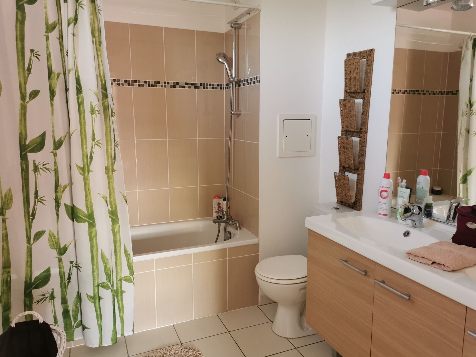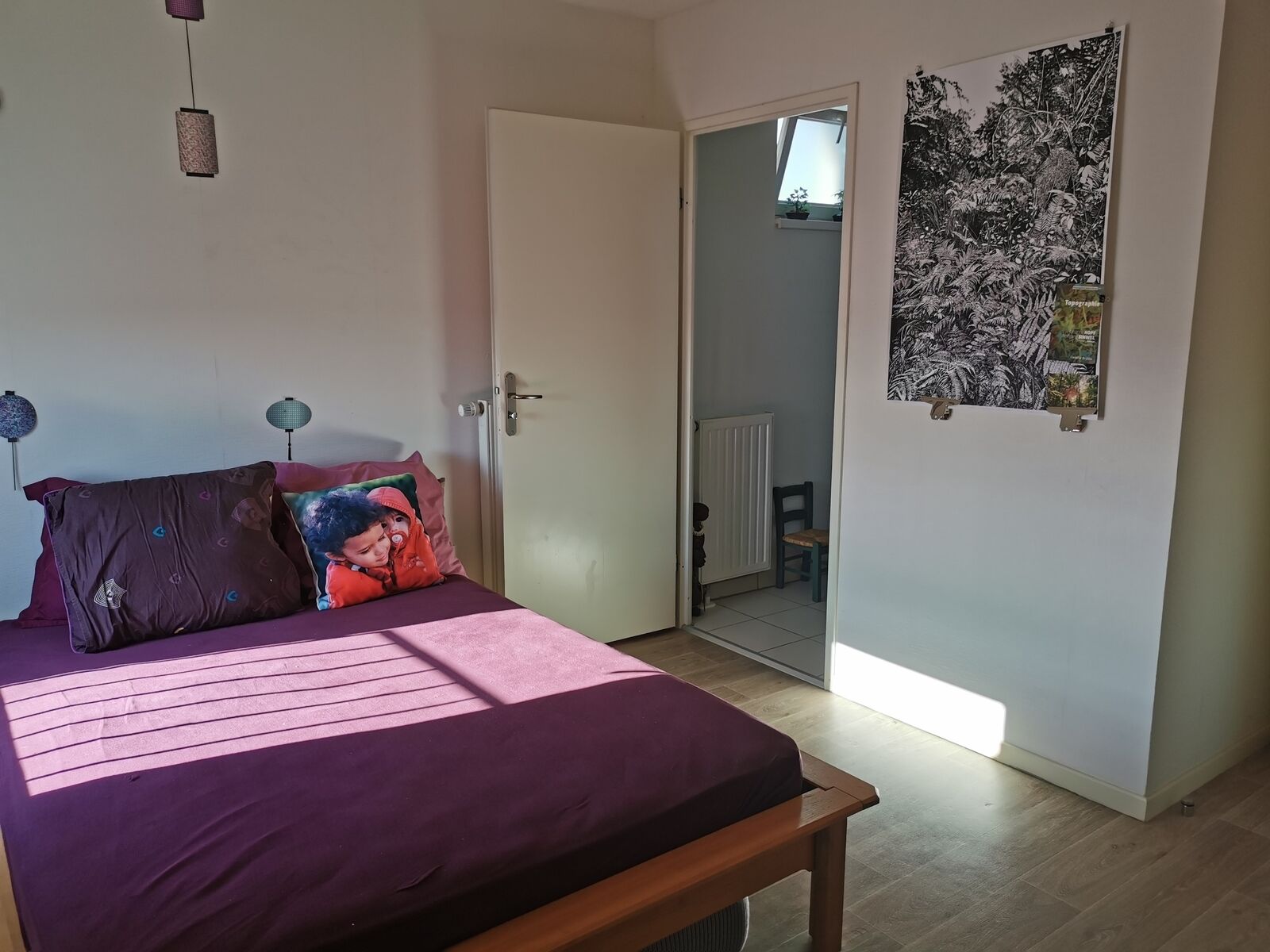 Une deuxième chambre de 10m2, un bureau (ou petite chambre d’enfant), une salle d’eau avec douche et lavabo.