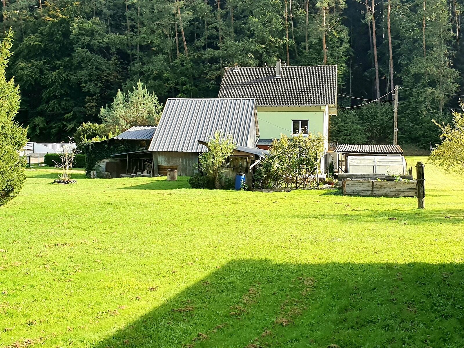 une dépendance d'environ 100 m2 comprenant un atelier, un abri pour voiture, un abri de jardin et un hangar.
