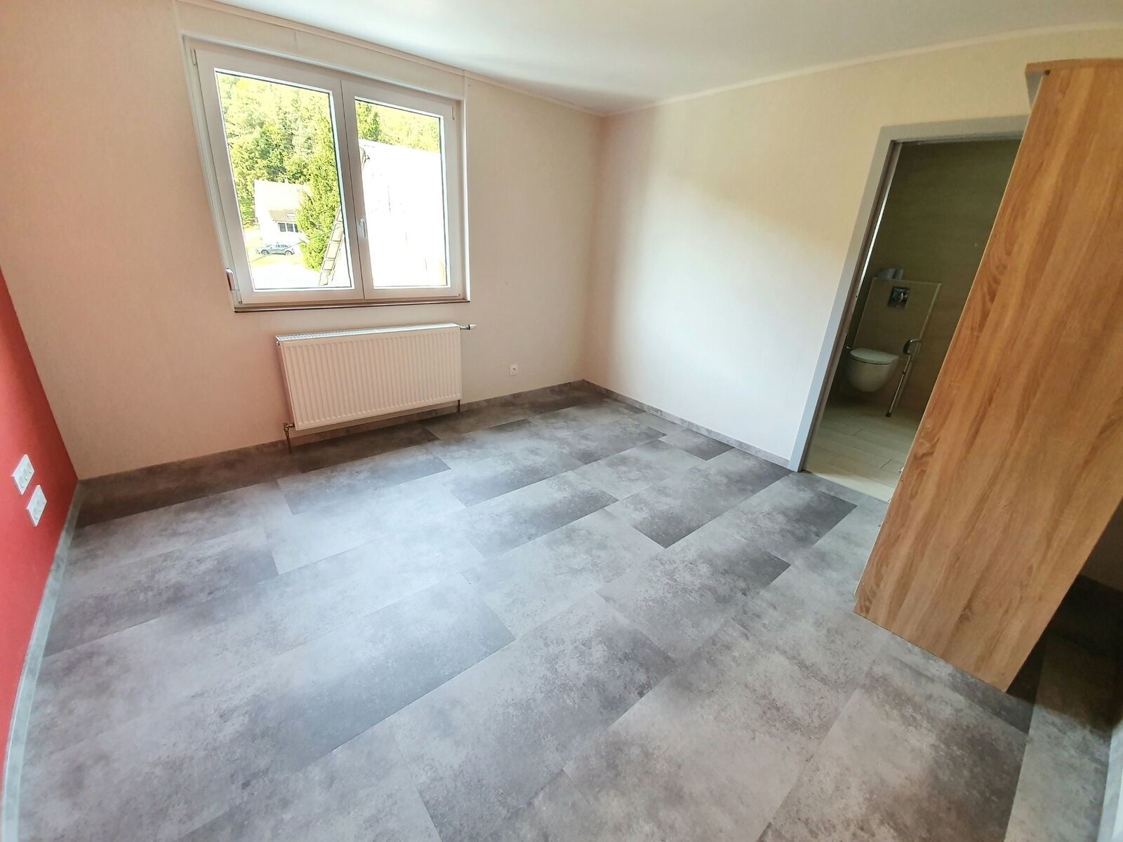 une salle d'eau neuve de 9 m2 avec douche pmr et wc.
