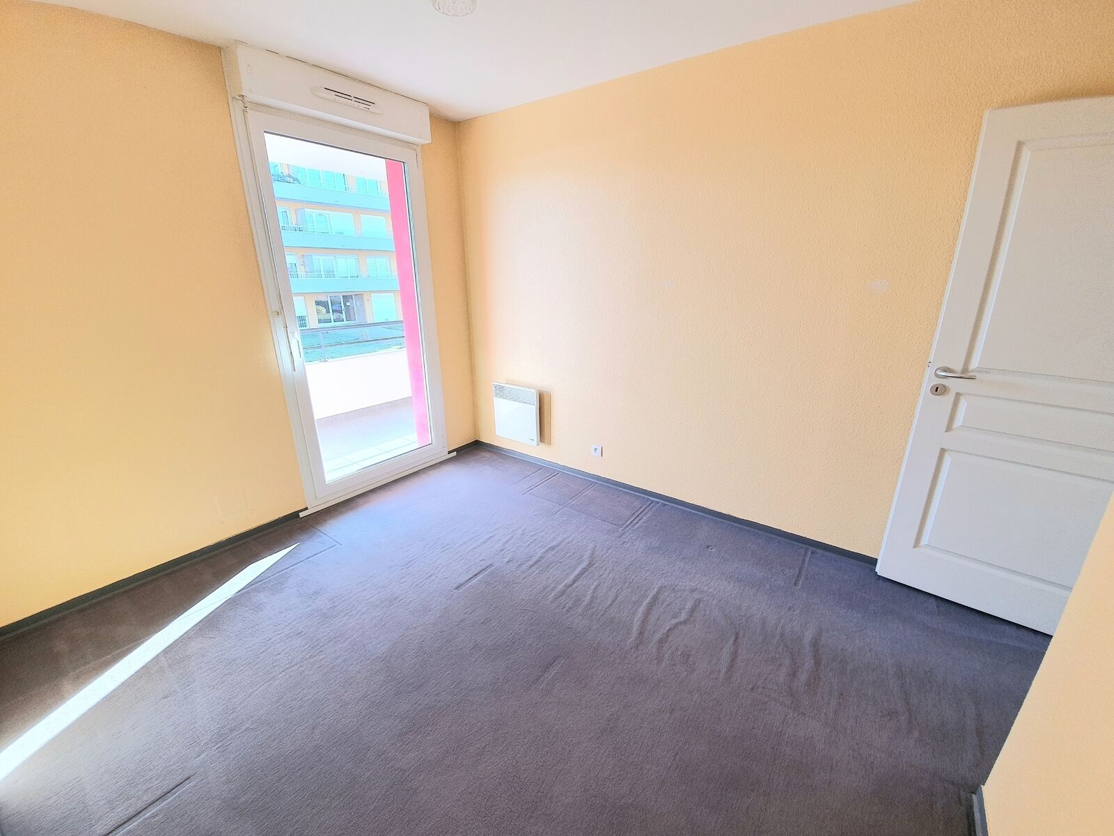une chambre de 11.53 m2 donnant sur le balcon.