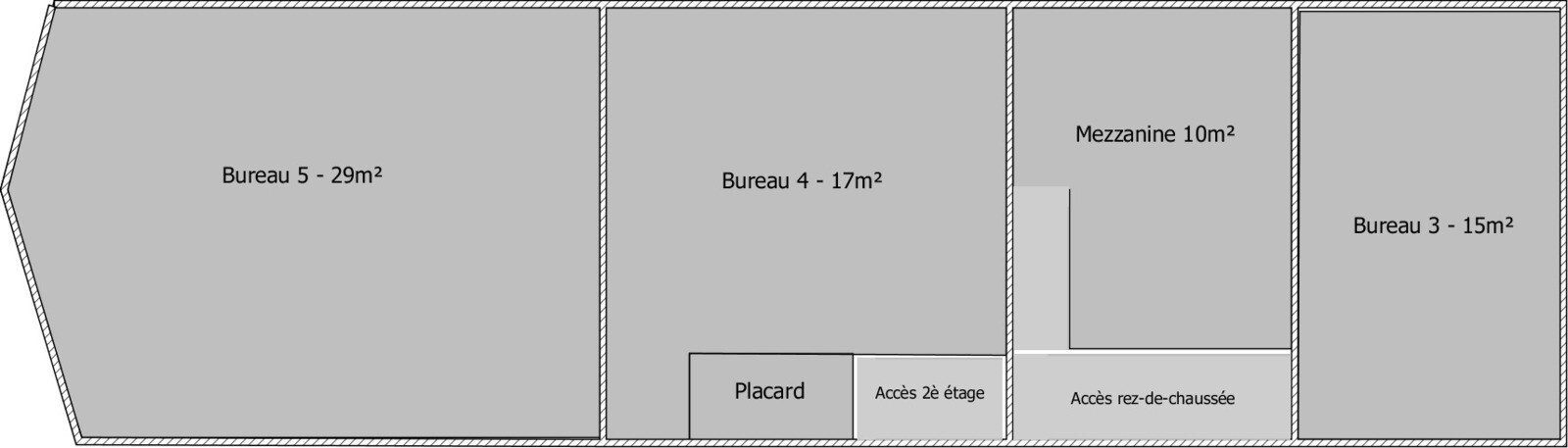 Au 1er étage d'une mezzanine de 10m², de 3 bureaux de 15m², 17m² et 29m².