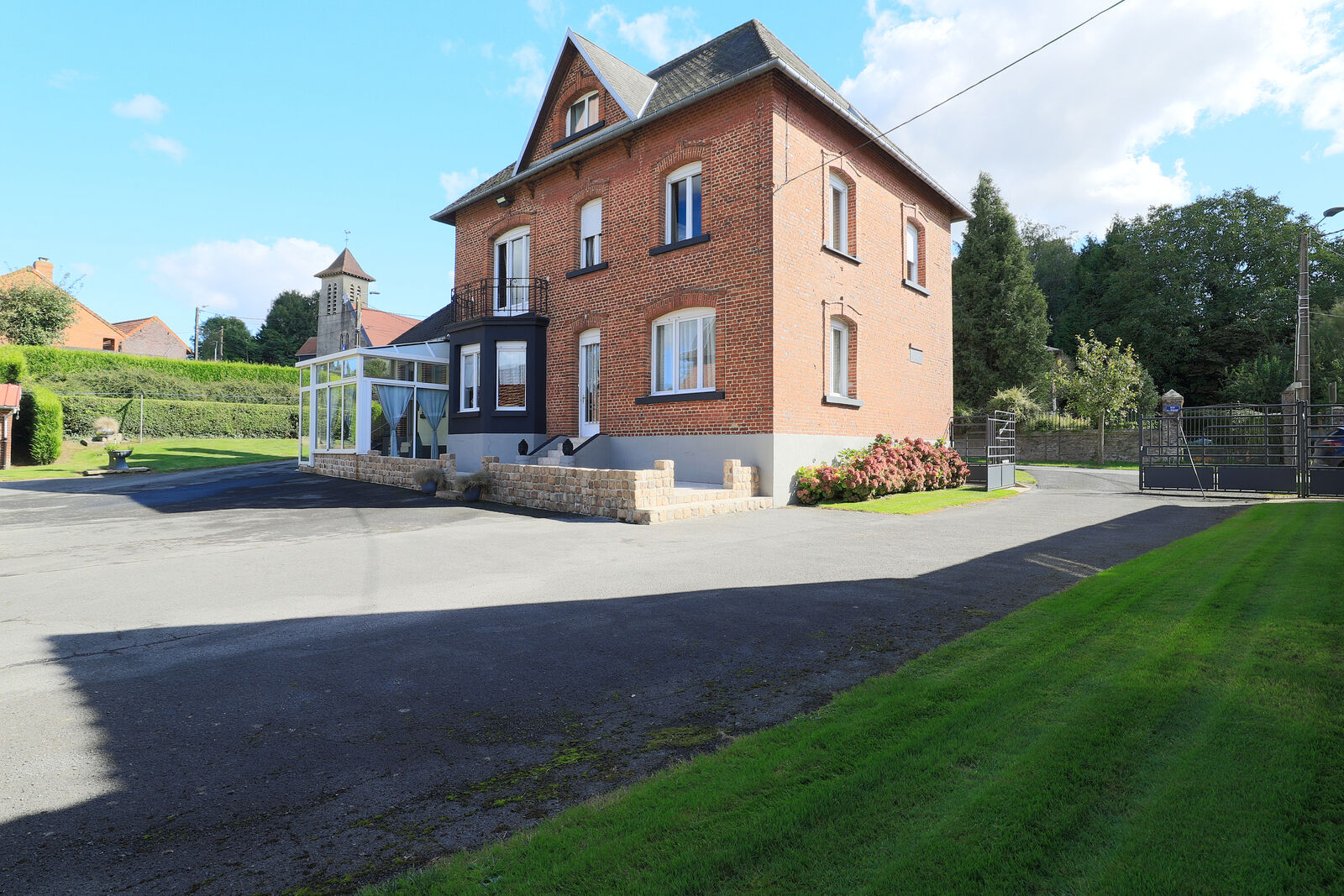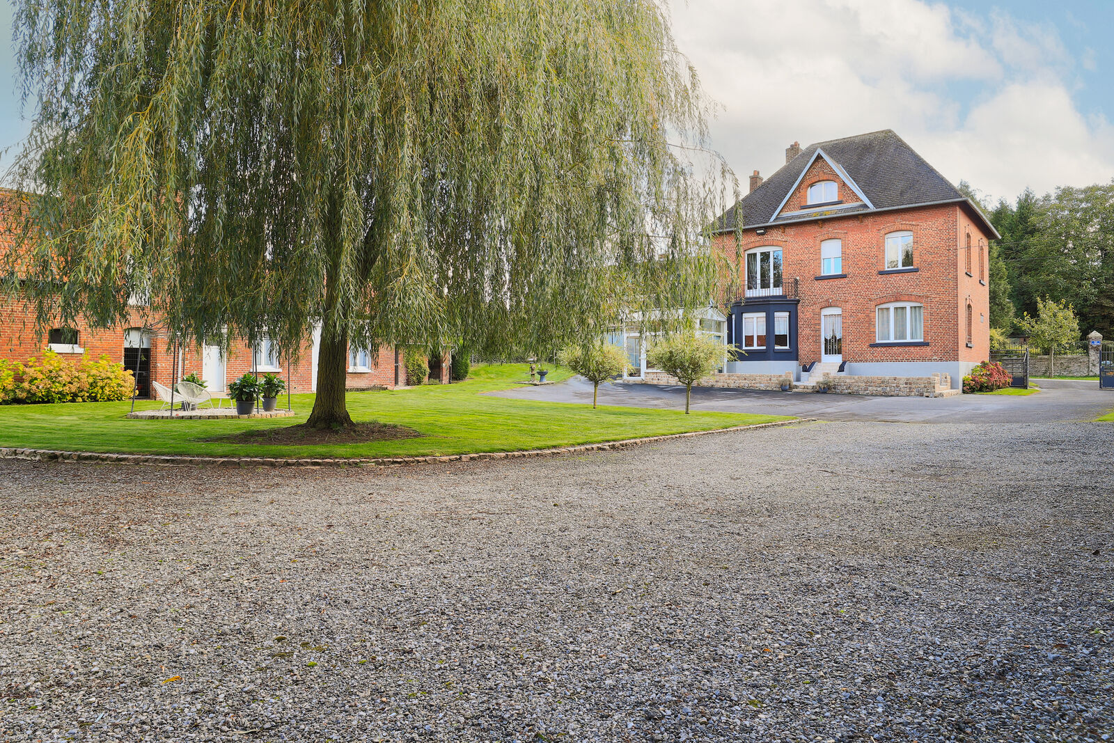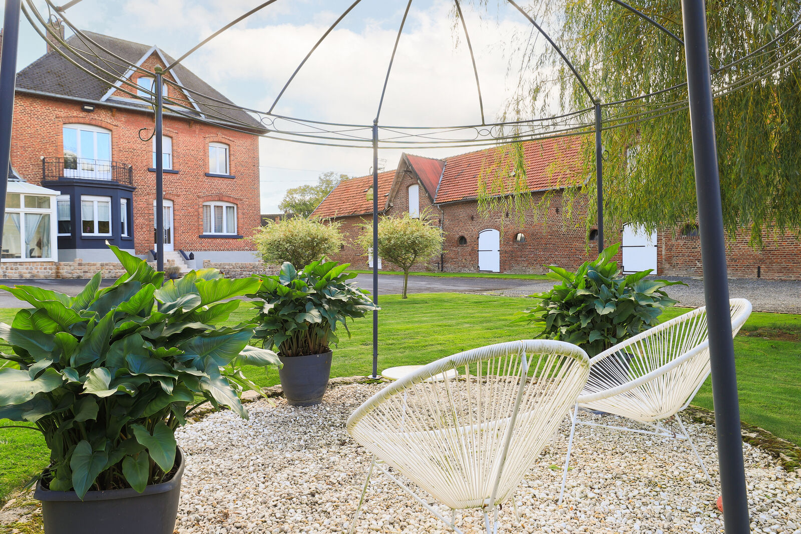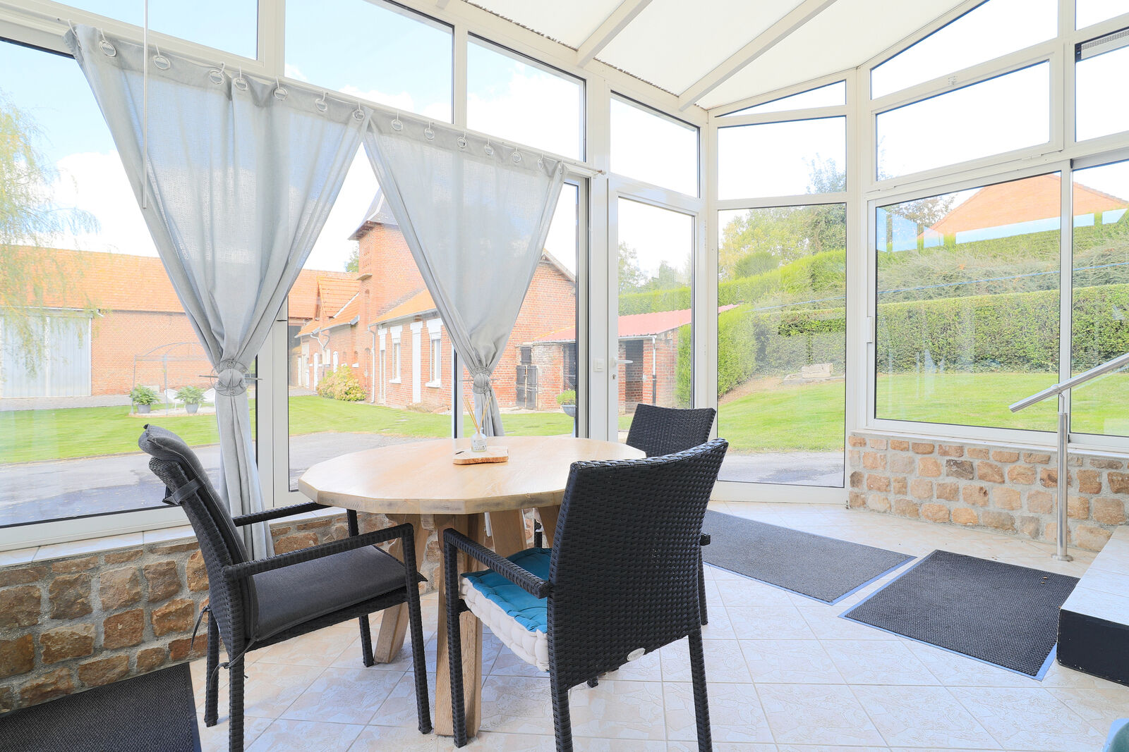 Grande véranda, idéale pour profiter de la vue sur le jardin verdoyant et les dépendances