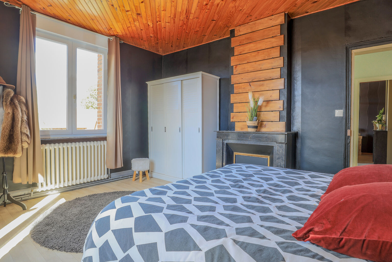 Chauffage moderne : Chaudière à granulés (installée en 2022) et cheminée à bois pour une atmosphère conviviale.