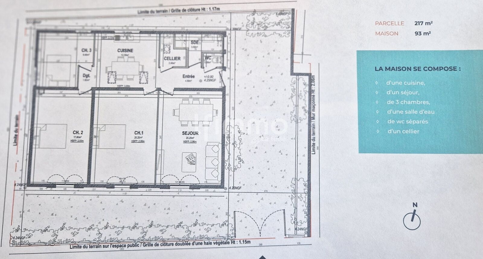 De plain pied, avec une surface de 93 m2 sur une petite parcelle 220 m2 environ. Cette maison est composée d'un séjour, de 3 chambres, d'une cuisine, d'un cellier et d'une salle d'eau. Sur l'espace extérieur, il est possible d'avoir une terrasse + un espace de stationnement pour une voiture.