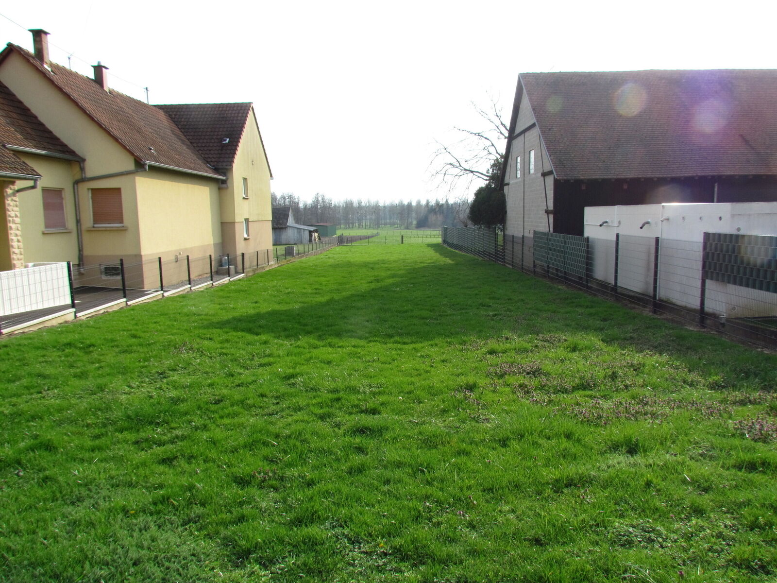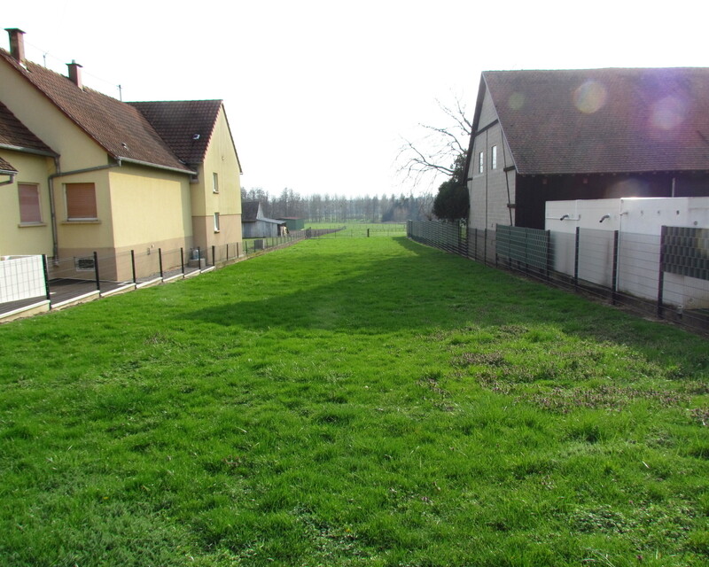 Terrain clôturé non viabilisé de 12.29 ares dont 6.1 ares constructibles d'environ 15mètres de large et 85 mètres de long se trouvant devant une rue pour se brancher et à quelques mètres de la piste cyclable vers Hatten.