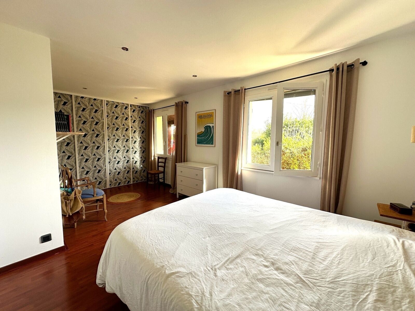 Vous pourrez découvrir dès l'entrée un double séjour très lumineux grâce à ses grandes portes fenêtre et à sa triple exposition (nord, sud et ouest) se prolongeant sur une cuisine équipée et une arrière cuisine, avec accès direct sur les deux terrasses: l'une, orientée plein ouest, surplombée par une magnifique glycine donnant sur le jardin et la piscine hors sol (terrain piscinable) et la seconde, au nord, avec potager, barbecue et point d'eau.