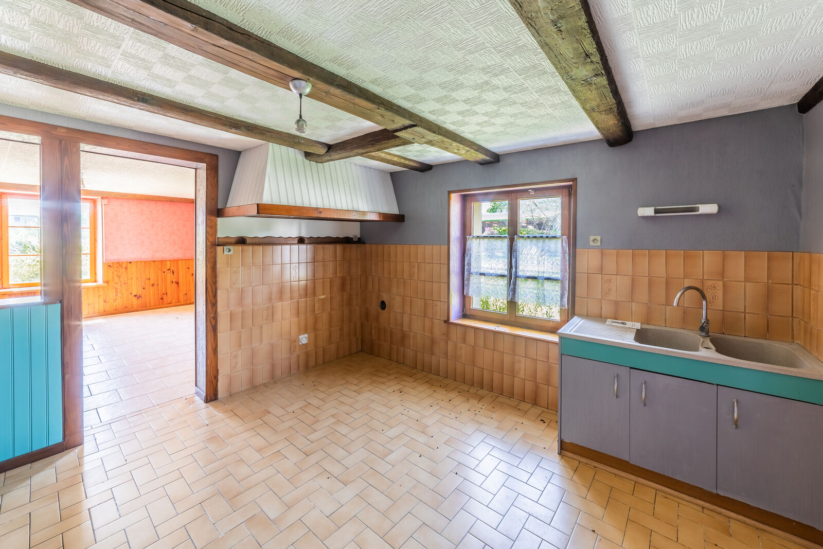 - Une Cuisine, dotée d'un bel espace, permettant d'y installer un coin repas, faisant la jonction entre le Salon et le Séjour,