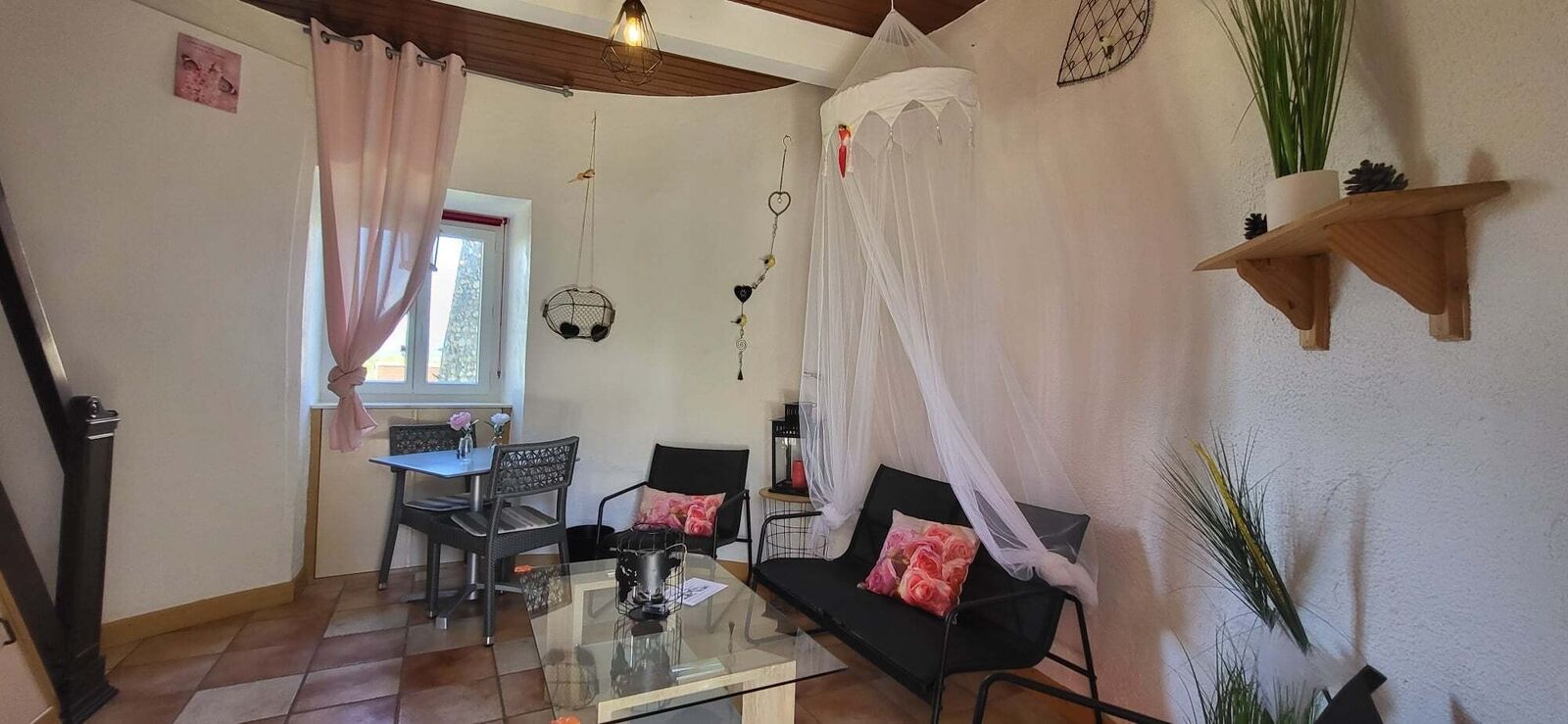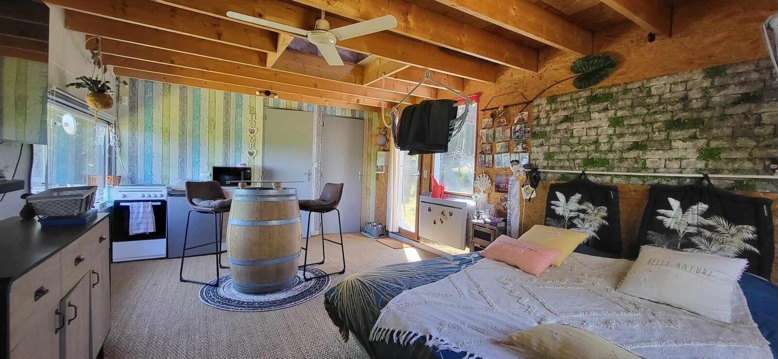 * 1 moulin en pierre rénové (25 m²) : chambre, salle d’eau, salon atypique.