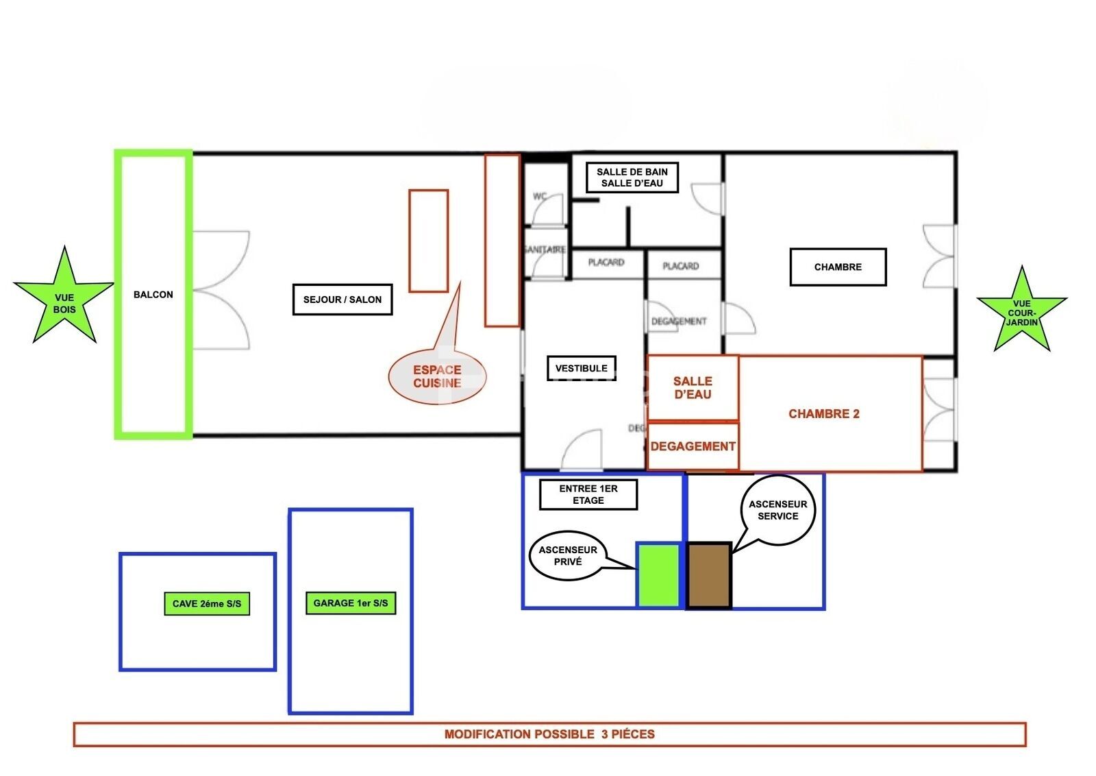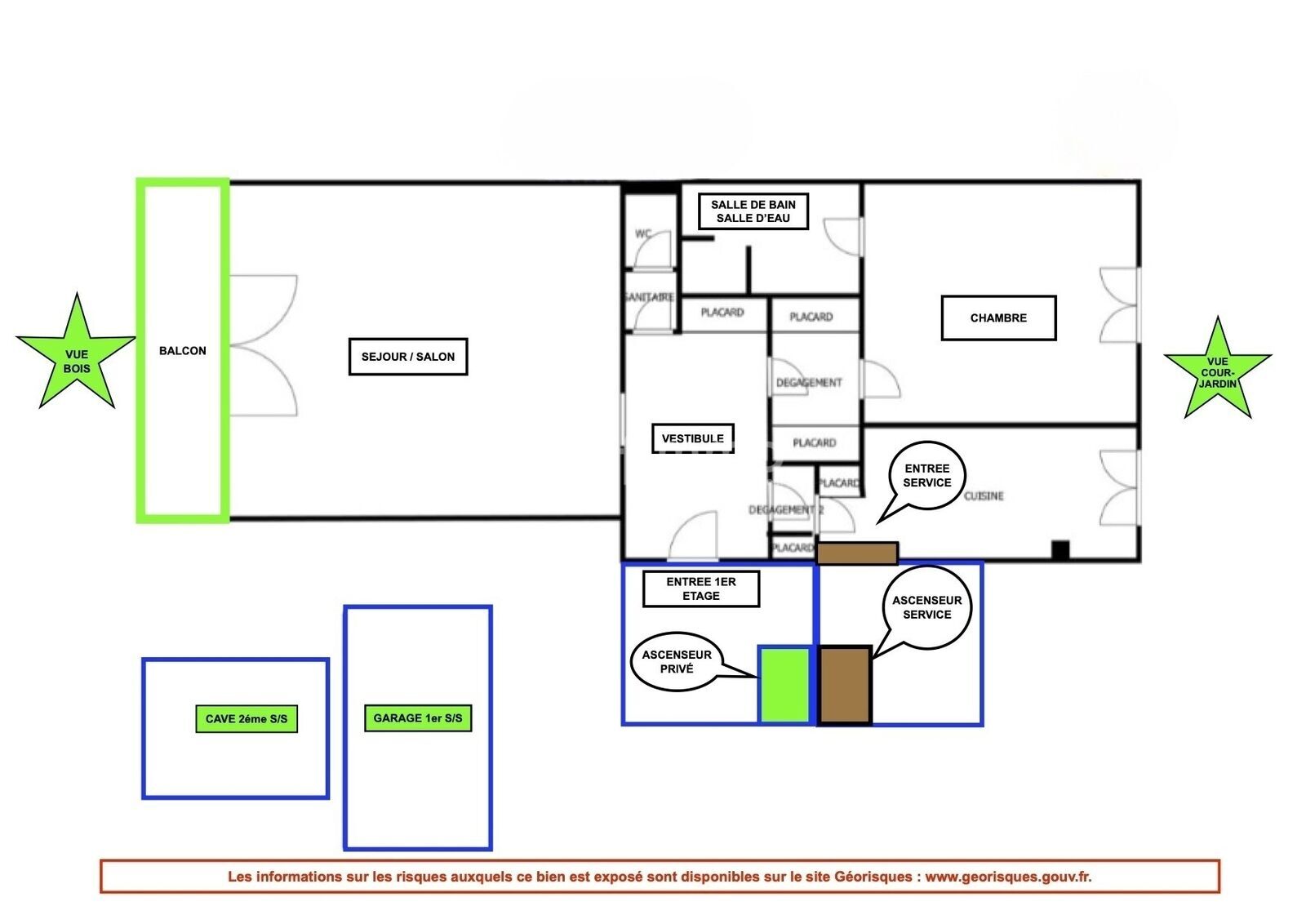 Situé dans l’un des quartiers les plus prisés de Neuilly-sur-Seine, ce magnifique appartement traversant de 97m² offre un cadre de vie exceptionnel. À seulement 10 minutes de l’Étoile et des Champs Élysées et à proximité du Jardin d’Acclimatation et du métro Sablons, cet appartement représente une opportunité rare. Niché au premier étage d’un immeuble bourgeois de grand standing, sécurisé et doté d’un gardien, l’appartement bénéficie d’un calme absolu. L’ascenseur privé s'ouvre sur un large hall d'entrée donnant accès au vestibule qui distribue un grand séjour lumineux d’environ 40 m², complété par un balcon filant offrant une vue imprenable sur le Bois de Boulogne. Côté intimité, la chambre de maître jouit d’une vue sereine sur la cour-jardin. L’appartement comprend également un espace penderie-dressing et une salle de bain-salle d'eau privative, une toilette invités avec point d’eau, une cuisine aménagée et équipée avec office accédant sur une entrée de service privée avec ascenseur, ajoutant une touche de commodité rare. Les nombreux rangements intégrés et la possibilité d’aménagements variés rendent cet espace à la fois pratique et adaptable à vos besoins. Un box fermé et une cave en sous-sol complètent ce bien, faisant de cet appartement une proposition d’investissement des plus attrayantes.