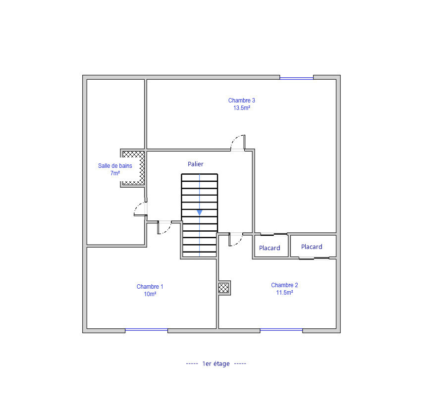 - Chambre 3 : 13.5m² avec placard intégré, spacieuse et confortable