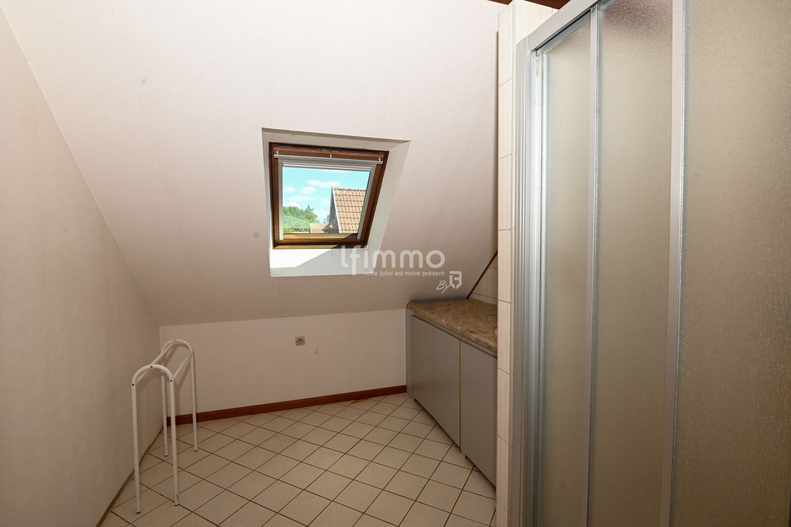 Cette belle et vaste maison familiale d’environ 194 m² (217 m² de surface au sol) sur un terrain arboré de plus de 6 ares, comprend six chambres (de 13 m² à 19 m² environ de surface habitable) dont deux au rez-de-chaussée. Le salon et la salle à manger profitent de la chaleur réconfortante d’un kachelofe. Avec la cuisine équipée semi-ouverte, les pièces à vivre représentent en cumulé une surface de près de 54 m², donnant sur une grande véranda et se prolongeant par une terrasse couverte. Des sanitaires (salle de bain, salle d’eau et WC) se trouvent aux deux niveaux. Une grande et lumineuse mezzanine distribue les différentes pièces de l’étage. La maison offre un sous-sol complet de 105 m² environ (avec caves, remises, garage, atelier) et des combles avec de beaux volumes.