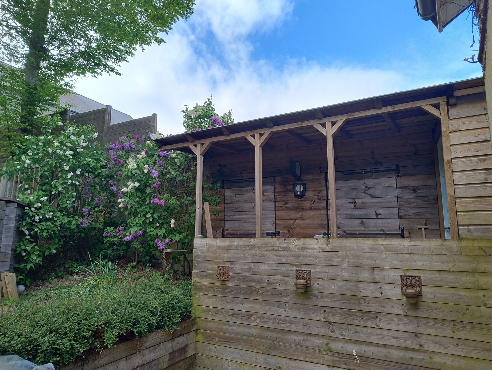Le véritable atout de cette maison est son extérieur exceptionnel. Une terrasse accueillante vous invite à profiter des beaux jours, tandis qu'une piscine, idéale pour se rafraîchir en été, saura ravir toute la famille. Les enfants, quant à eux, trouveront leur bonheur dans la grande cabane solide au style Far West, offrant de nombreuses possibilités de jeu et d'aventure. Le beau terrain de 600 m² est parfait pour les activités en plein air et les moments de détente en famille.