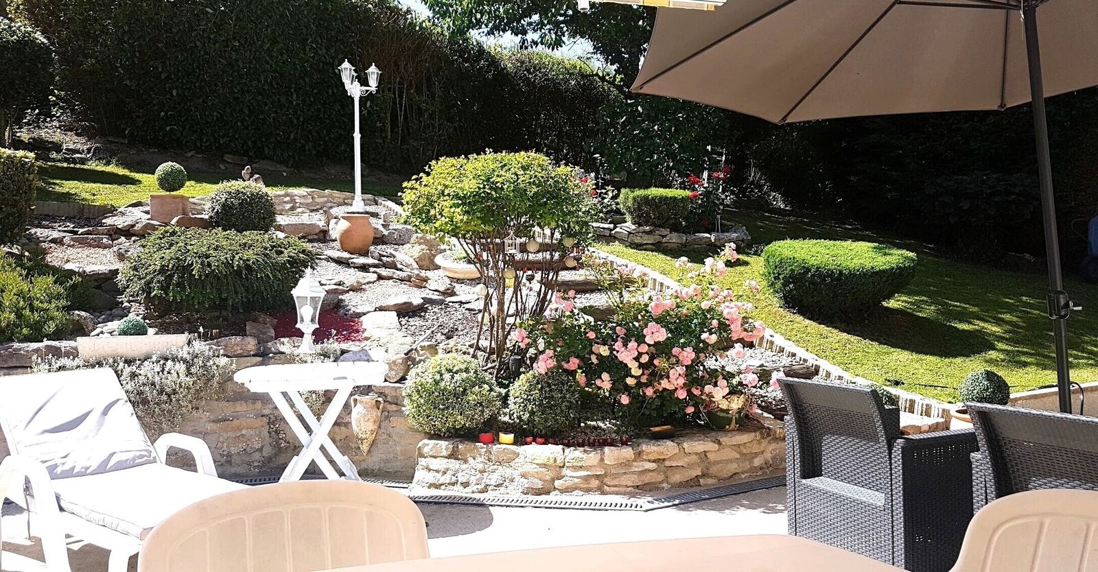 Le jardin à l'arrière de la maison est un véritable havre de paix joliment arboré offrant un espace vert privé pour se détendre et profiter des beaux jours.