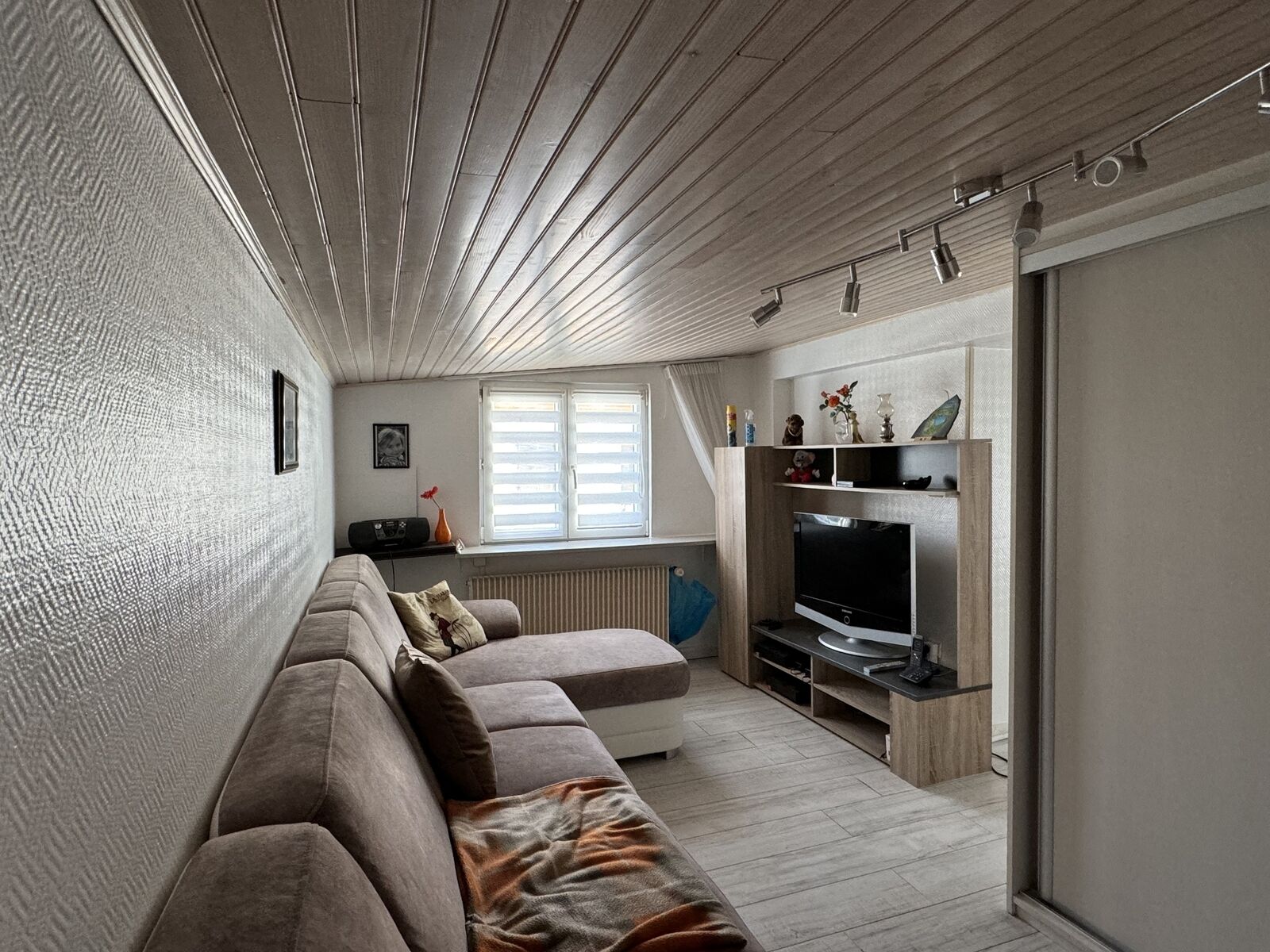 Dès l'entrée, vous serez accueillis par une chaleureuse pièce à vivre, adjacente à une cuisine bien équipée. Au rez-de-chaussée, vous trouverez également l'accès à une cave située à un demi-niveau inférieur, idéale pour le stockage.