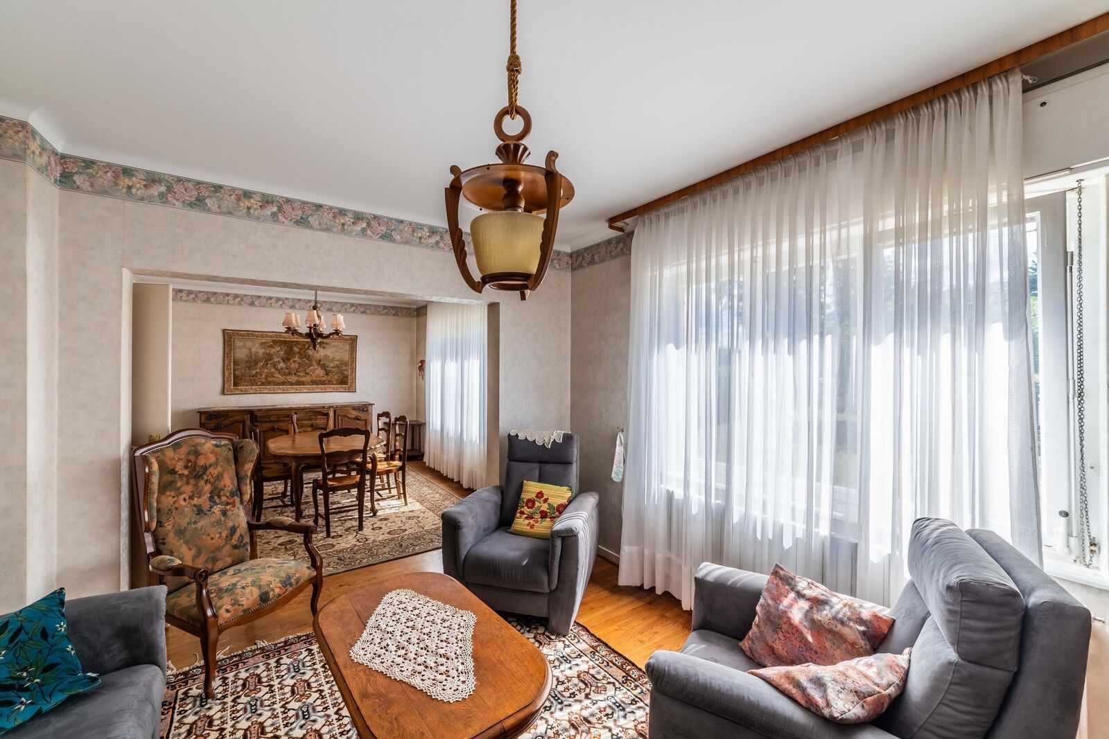 Au niveau principal, après avoir aperçu une jolie entrée, se distingue principalement, les pièces à vivre, avec notamment un 🛋️ Salon-Séjour de plus de 30 m², décomposé en 2 parties distincts (Sur les Plans, le Salon était indiqué telle une Chambre). Présence d’une 🧑🍳 Cuisine séparée.